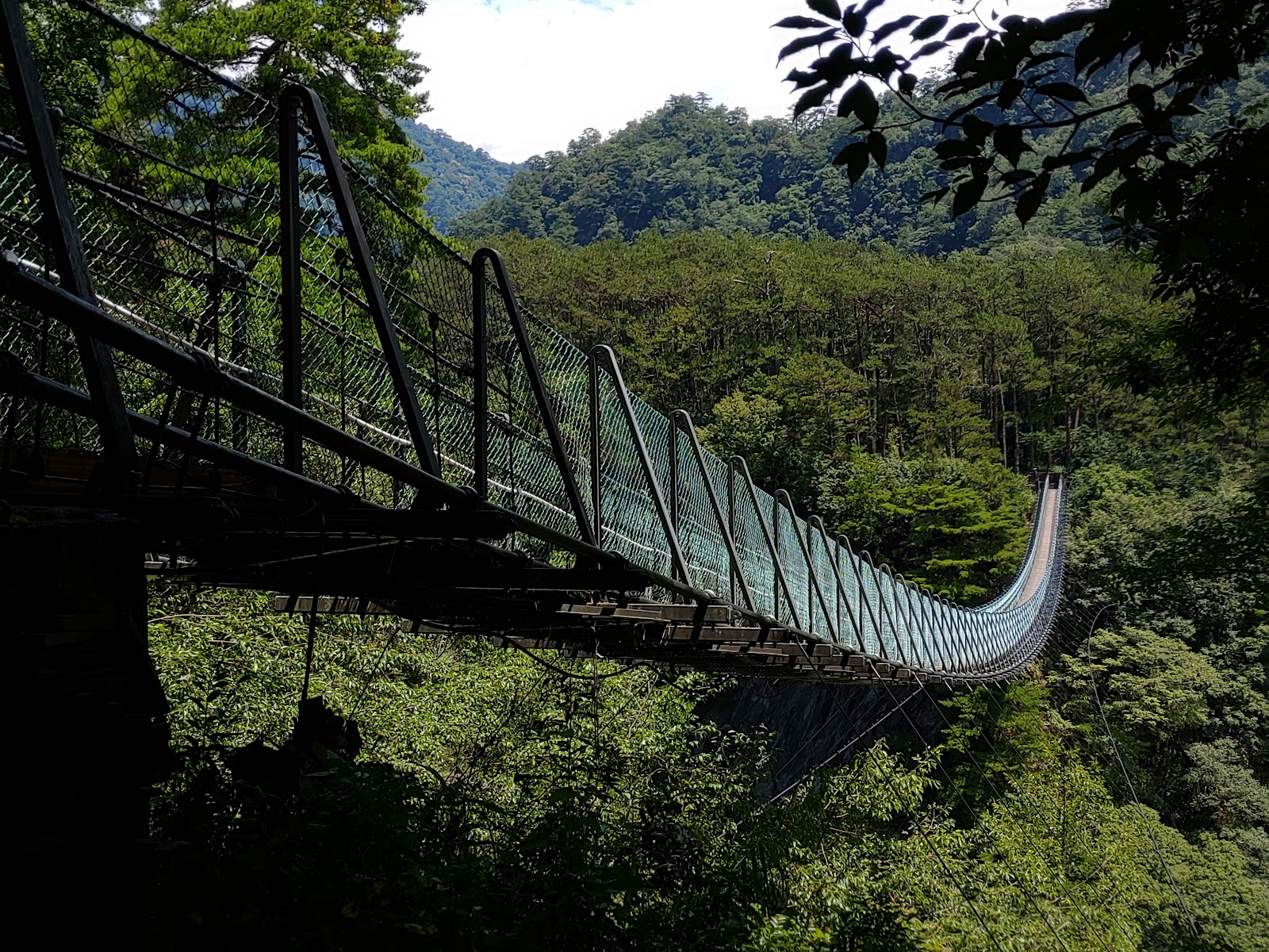 奧萬大吊橋是攀登能高安東軍的關鍵要道;吊橋山谷懸空,吊橋視野開闊,向東眺望能高主峰,西面臨深淵收覽山谷深壑,無人叨擾,只有黑烏與涼風相伴,包場獨享著幽靜的美景。