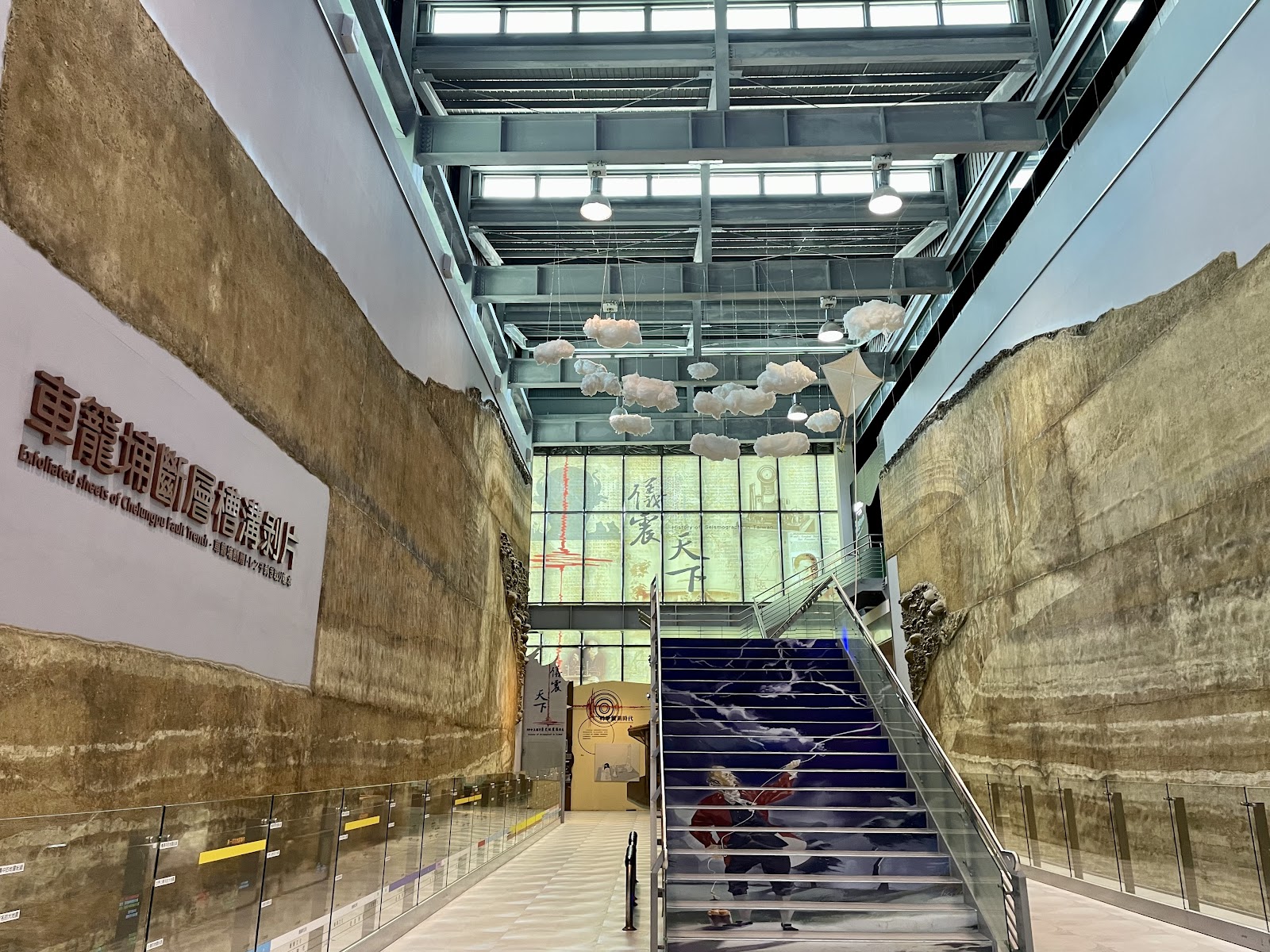 保留了之前開挖的斷層區,作為導覽的場域,解說與投影效果都很棒~