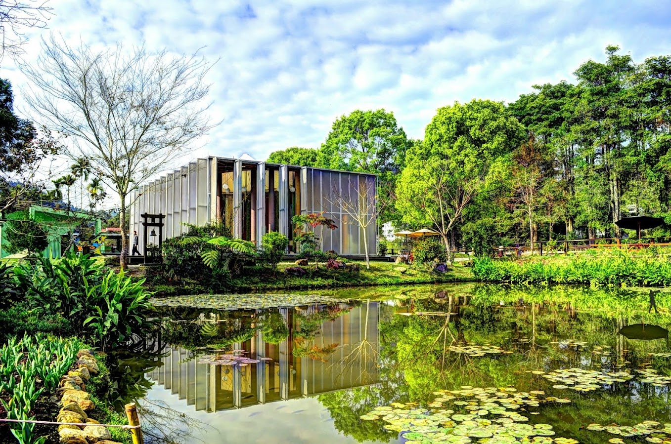 景點特色: 園區設有兩大區塊荷花池,部分荷花高度可超過成人,適合近距離拍攝與紙教堂建築相互輝映的景色。