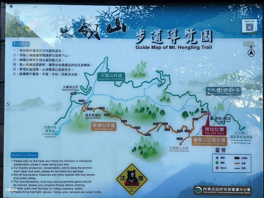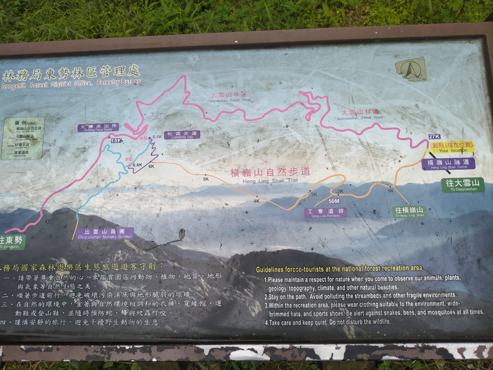 雖然橫嶺山步道只要兩三小時,但若從台中出發,其實也要花一個半到兩小時。建議先在「大棟派出所」上廁所,很乾淨與方便。停車可以停在25.5公里處空曠位置,也有停車位(26公里處白線區也看到很多車停)。