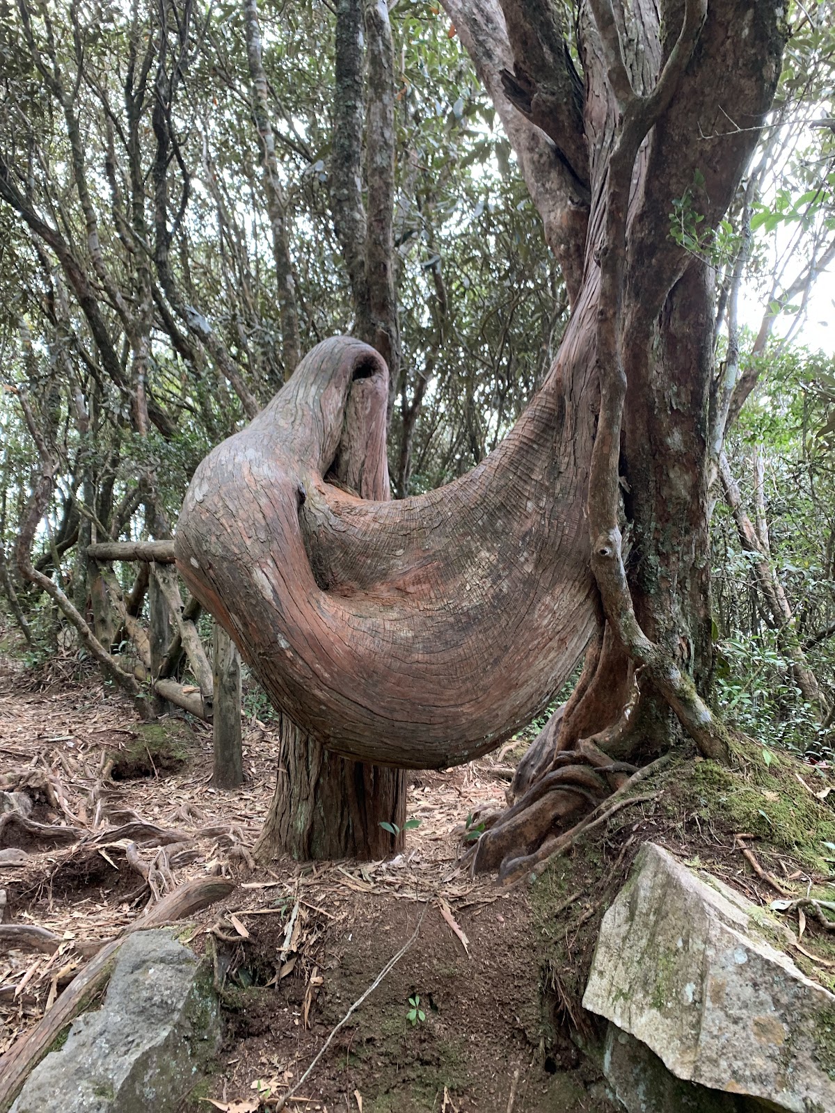 ✫型態:橫嶺山主峯步道,位於大雪山林道26.5k,橫嶺山隧道前為啟登口,原路折返,來回約3km,前面0.9k平緩好走,遇到三叉牌子左轉,開始陡上0.6k,看到可愛的蝸牛樹即抵達三角點,標高2024米,此處較無遼闊展望,但可休息打卡