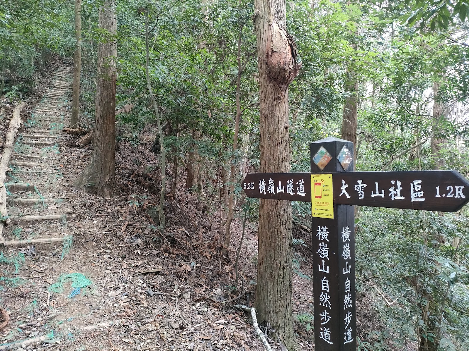 終於走到「橫嶺山步道」了,大雪山林道附近的步道幾乎都有去拜訪,好開心😁。其實😅還剩鳶嘴山啦。因為懼高症的我,還在心裡建設。