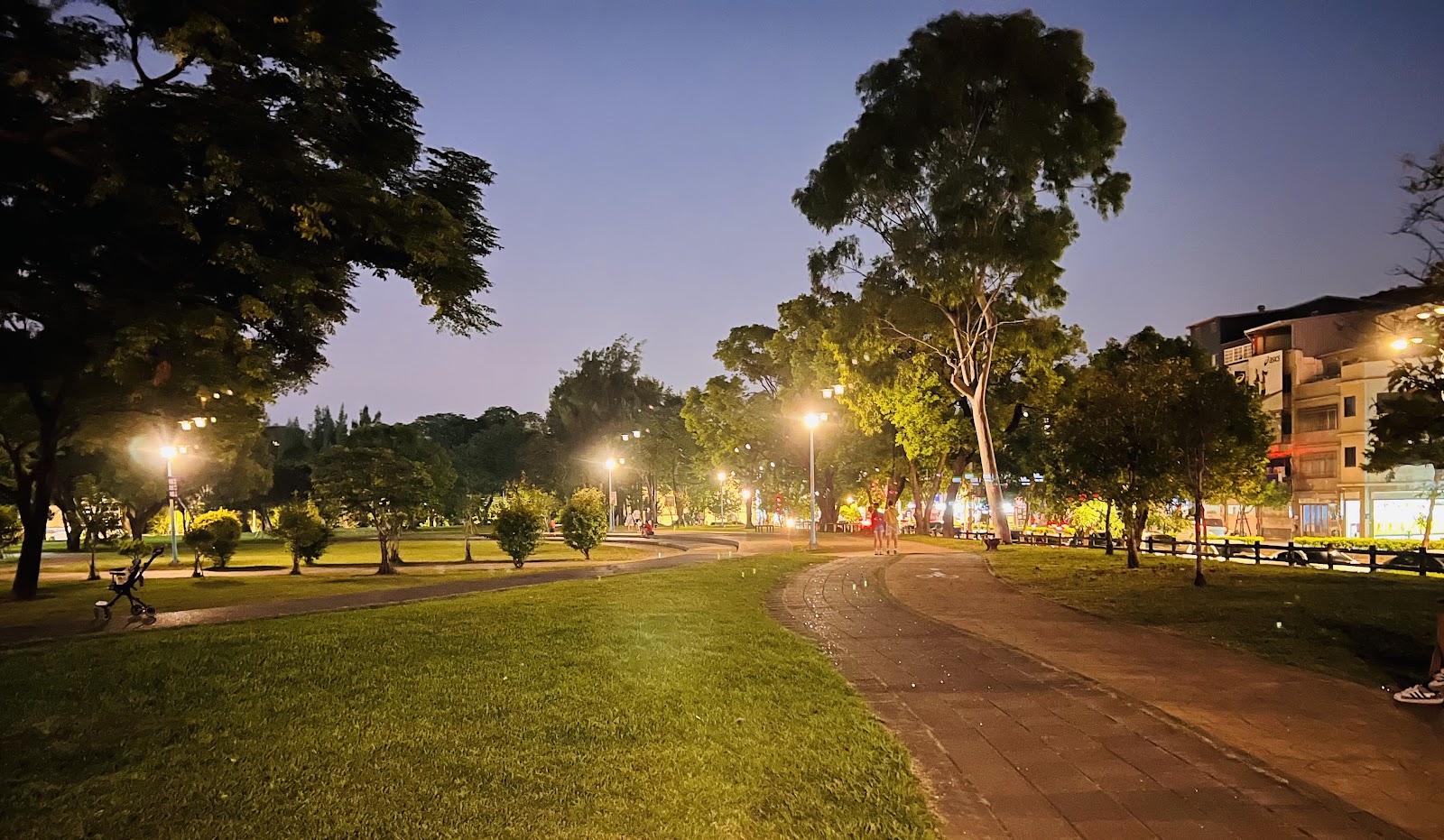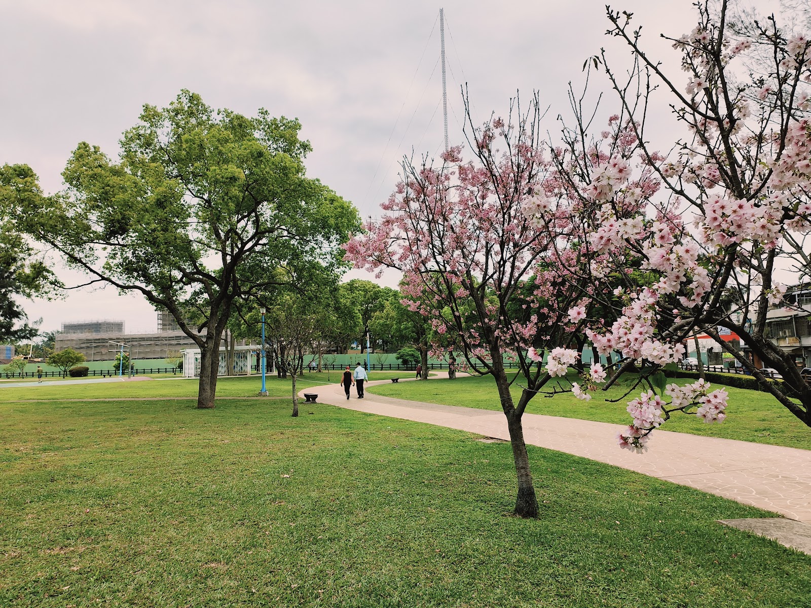 有很大的草皮,樹木不少,在市區內算很不錯的。