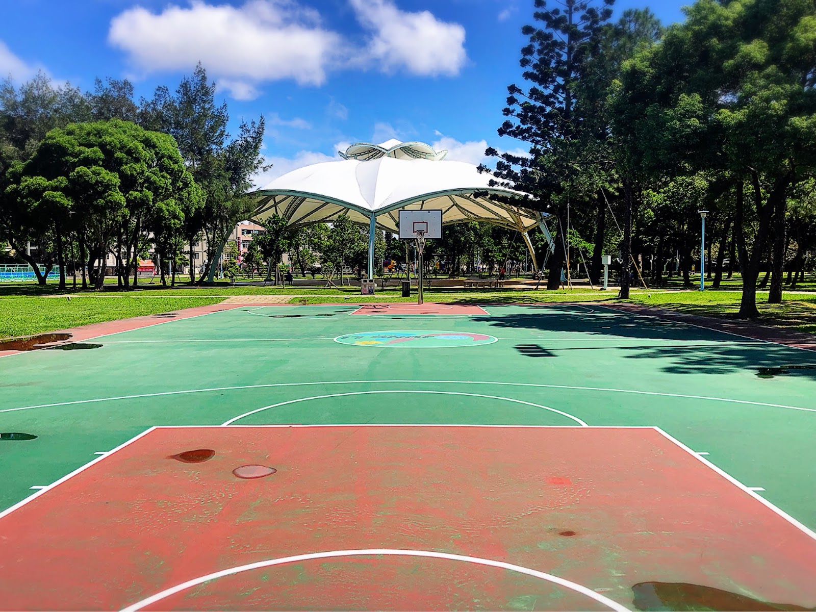 公園內規劃了平坦的環狀步道與自行車道,無論是晨跑還是飯後散步都很舒適。對於家庭客來說,兒童遊戲區、盪鞦韆和夏季戲水區是孩子的放電天堂;大人則可以利用各種健身器材與籃球場運動。此外,中央巨大的遮雨天幕(花開富貴)讓民眾在雨天也能活動,設計相當貼心。