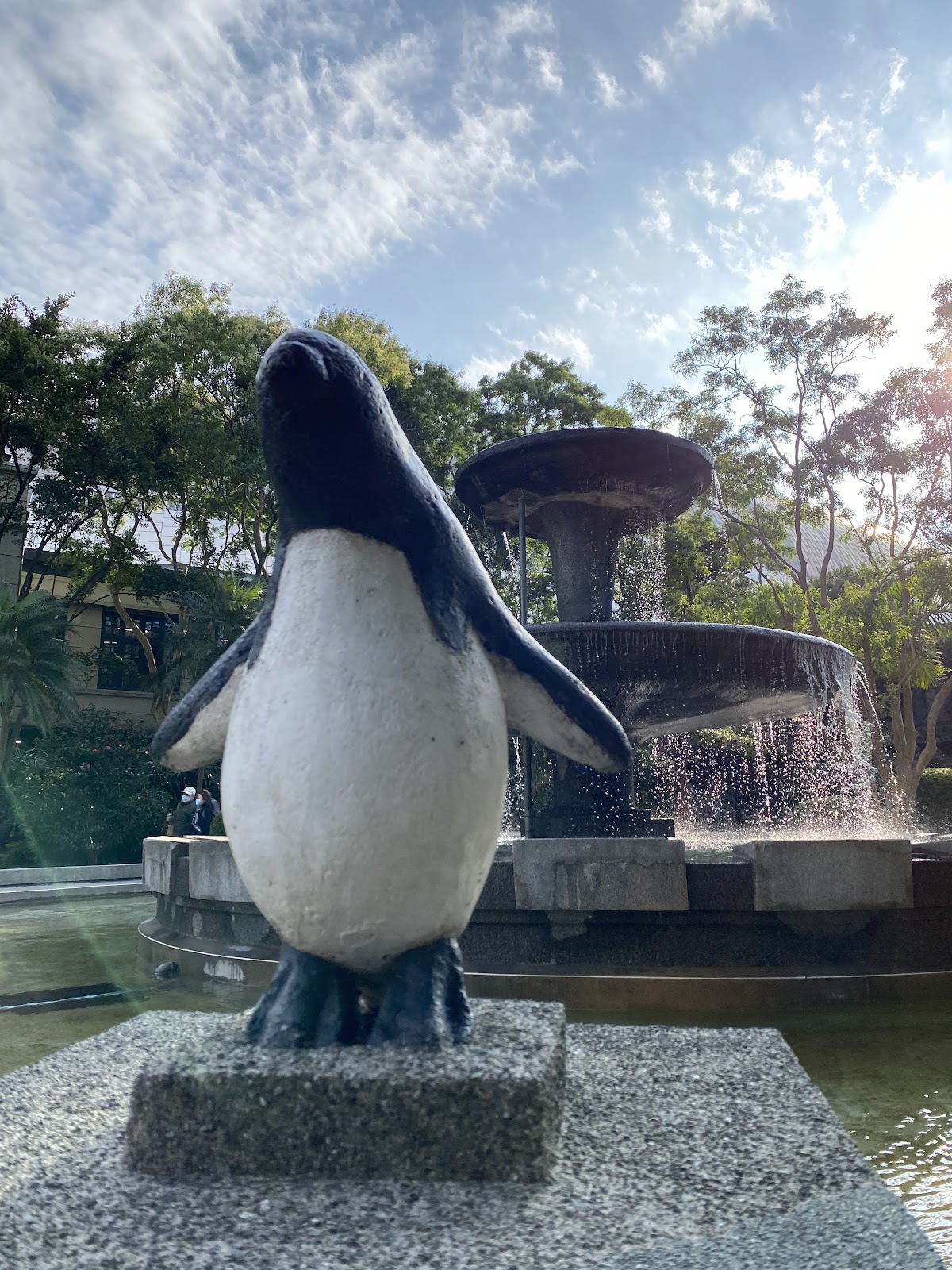 冬天來訪,暖暖陽光灑下來,坐在噴水池旁休息非常愜意😌