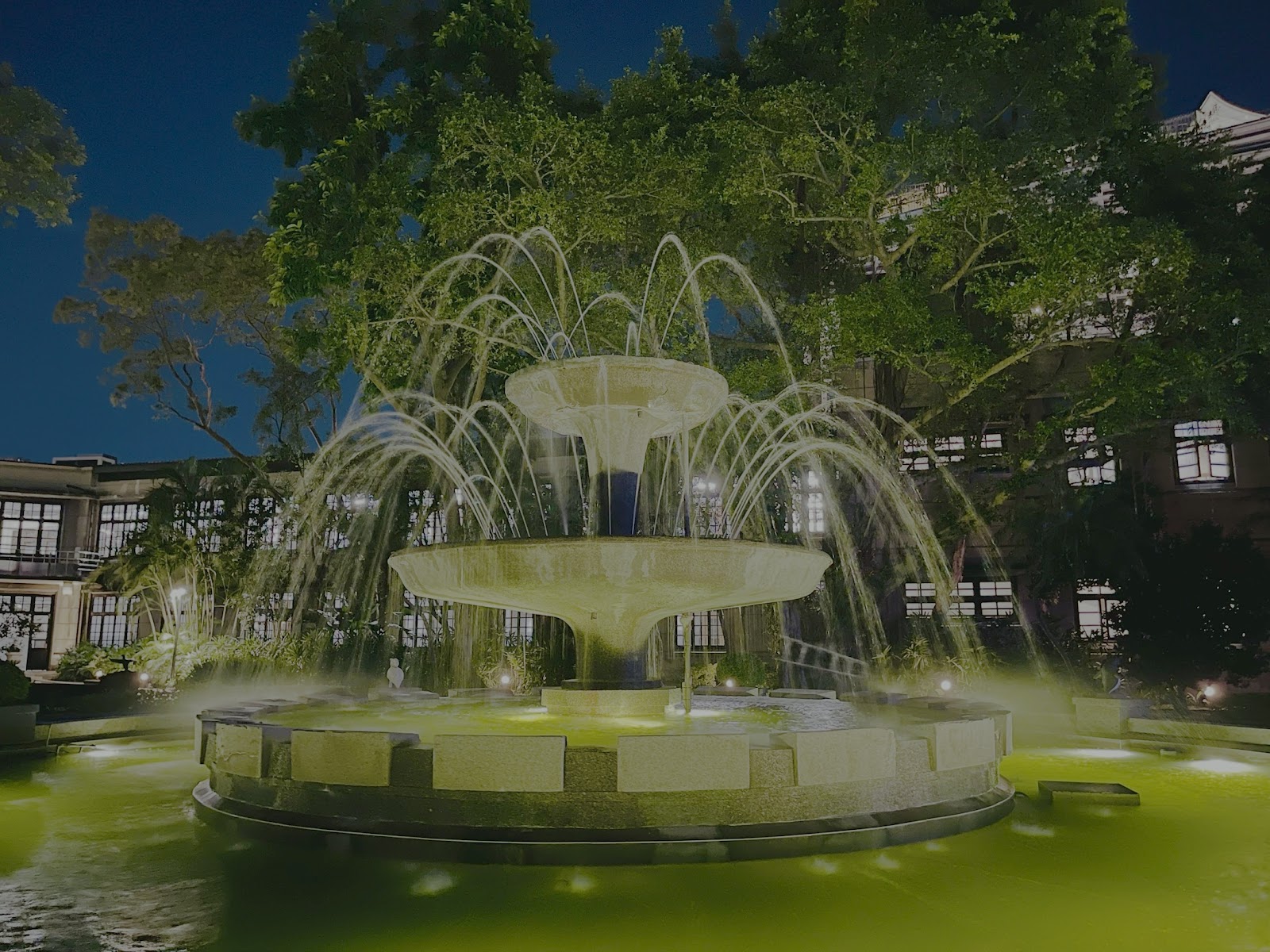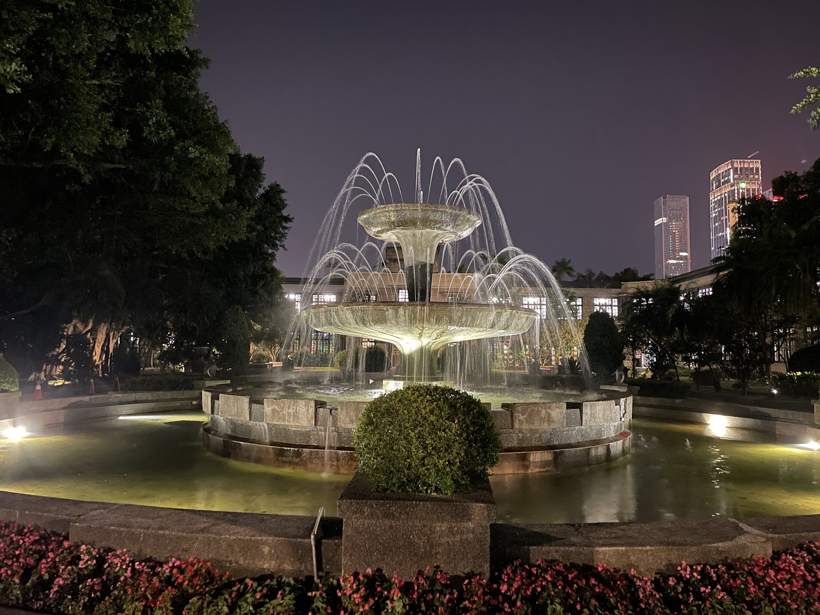 夜色迷人😍噴水池突然開始串串珍珠水花~^_^~自己的心靈喜悅如湧泉😄