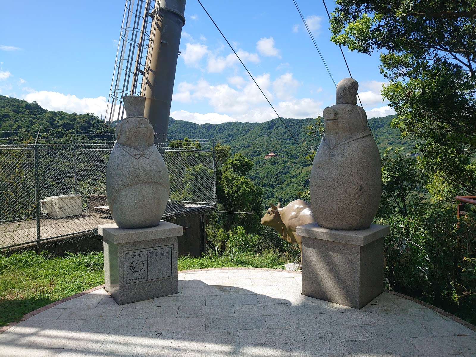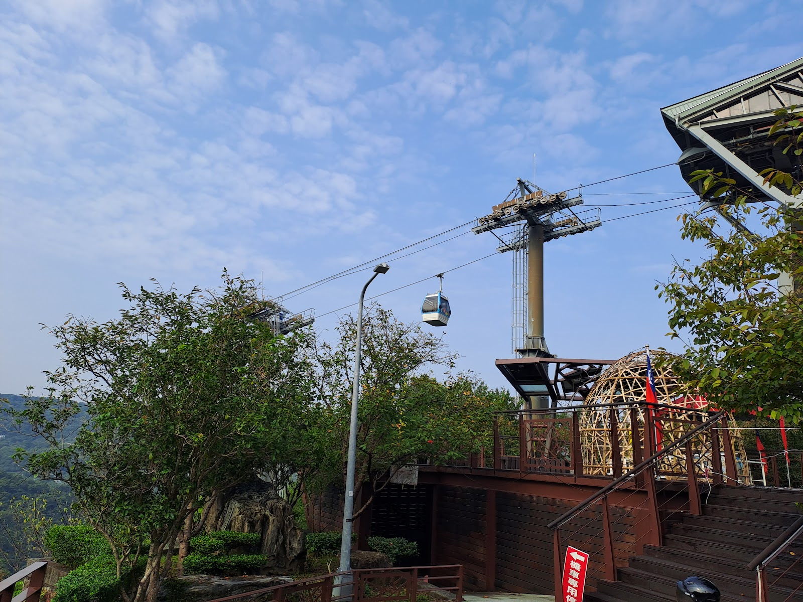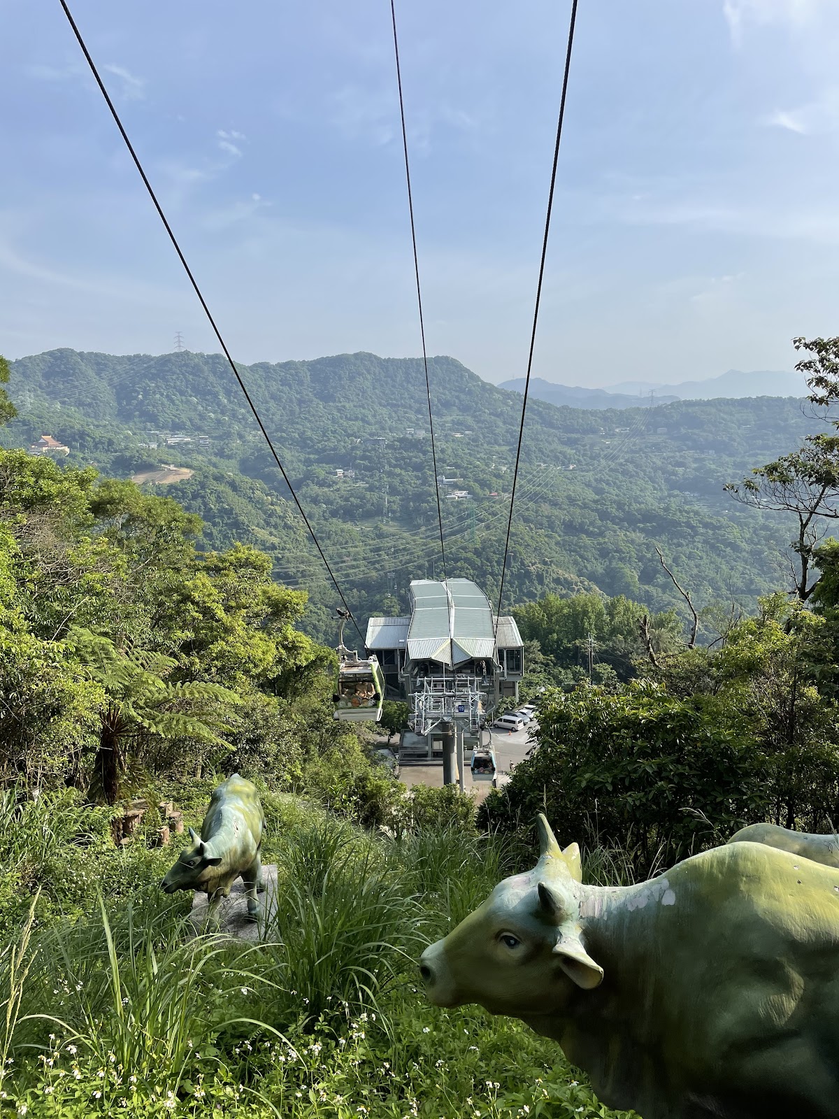 此步道最高處正是猴山岳土雞城下方路徑步道相銜接,步道標示明顯且有指標,十二生肖模型分佈路徑旁,步道以左右之字形而上,最高處有月下老人及太陽能板涼亭,可以鳥瞰台北市盆地,並欣賞纜車🚡系統越過頭頂,順勢下滑至指南後山站,是ㄧ處不太花體力,但有好視野的地方,既走訪此地就不訪稍花些時間上到月下老人處賞風景!