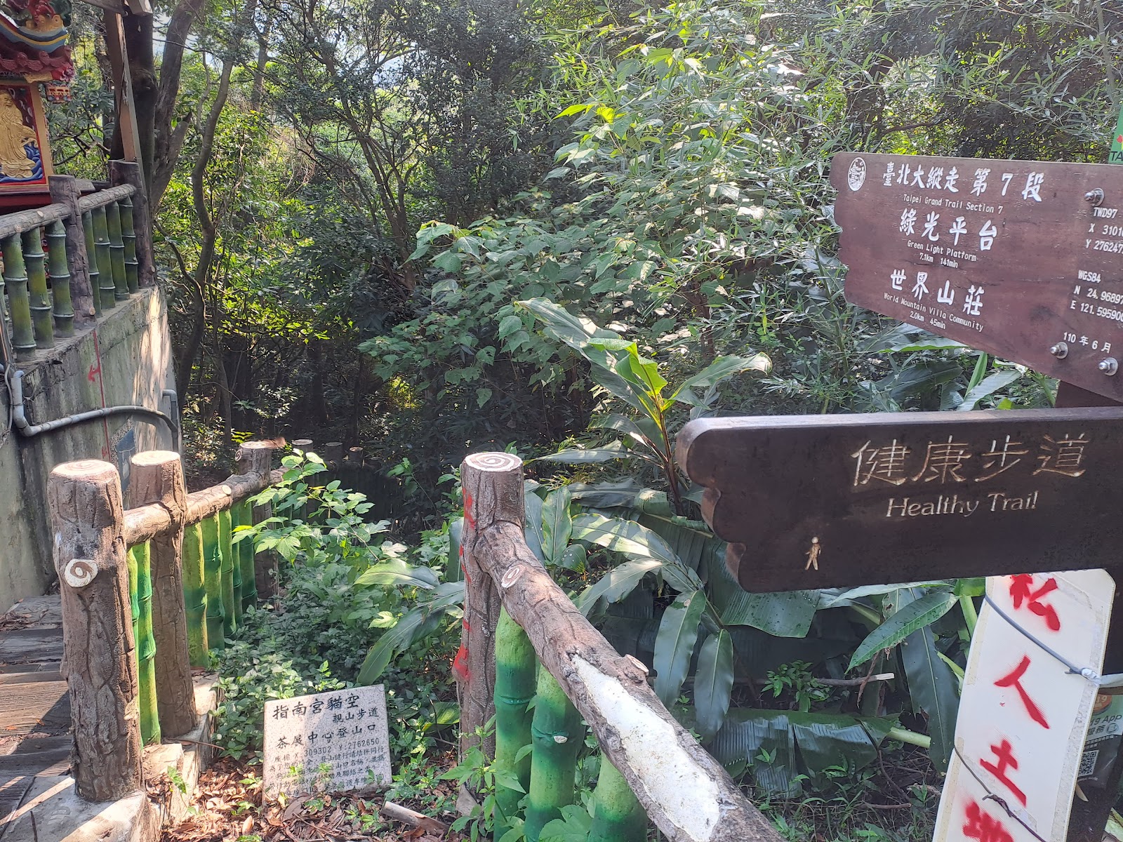 由政大登山口一路經1000階梯上到指南宮,後山上到貓空纜車站一路上風景優美,經過樟樹步道樟山寺下飛龍步道一條很棒的路程。