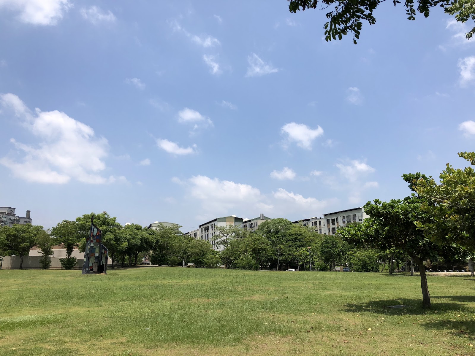 公園有廣闊的大綠地,可供家庭親子休閒活動,綠地正中間還有一個高大的彩色裝置藝術。另外公園內可抵擋烈日的樹蔭也不少,在靠近清大夜市區域還有一個類似羊造型會發光的裝置藝術,夜晚更顯得閃耀奪目。