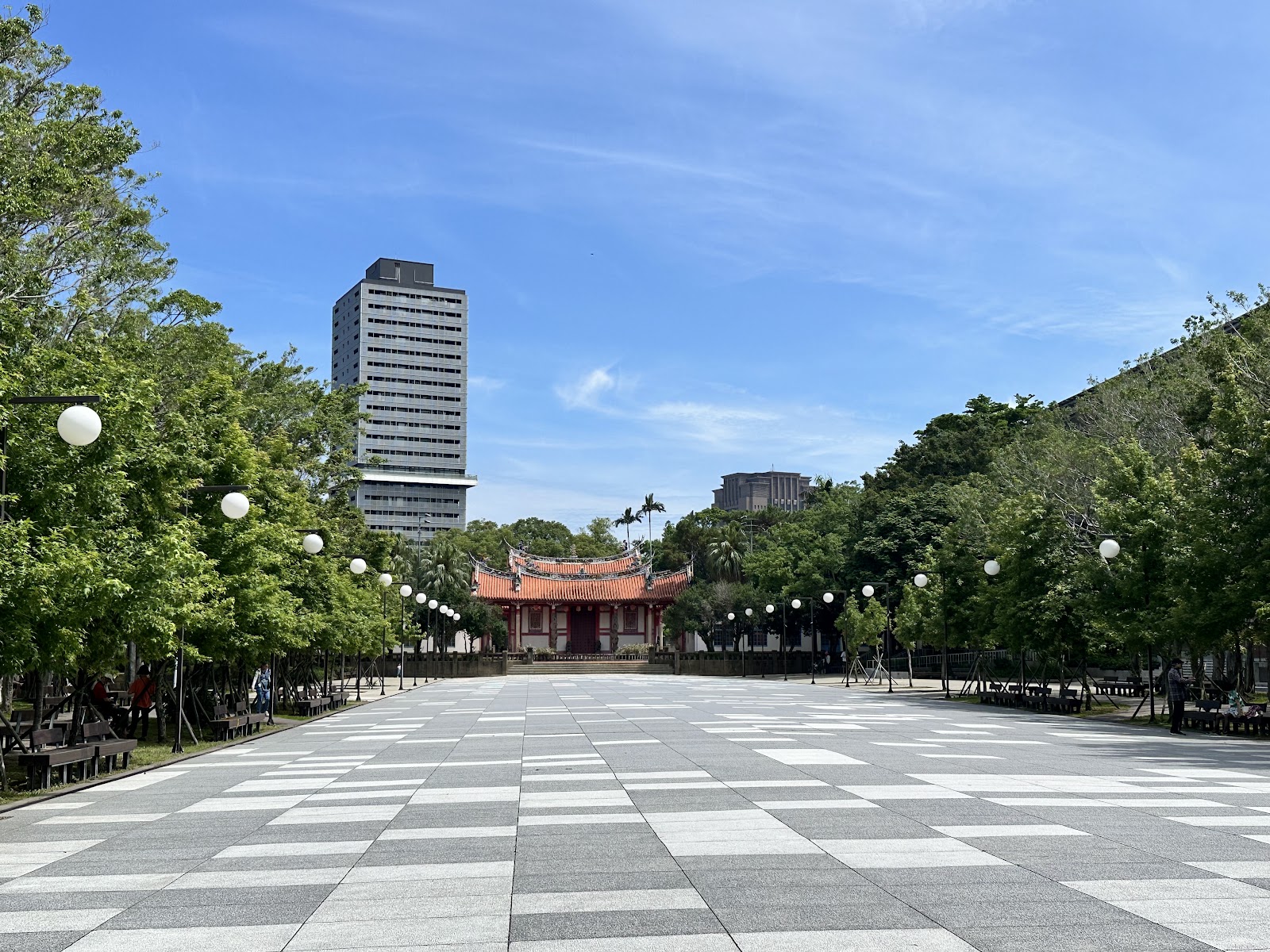 新竹在地的孔廟,座落在公園內,休閒散步的地方,廣場前蠻多人。