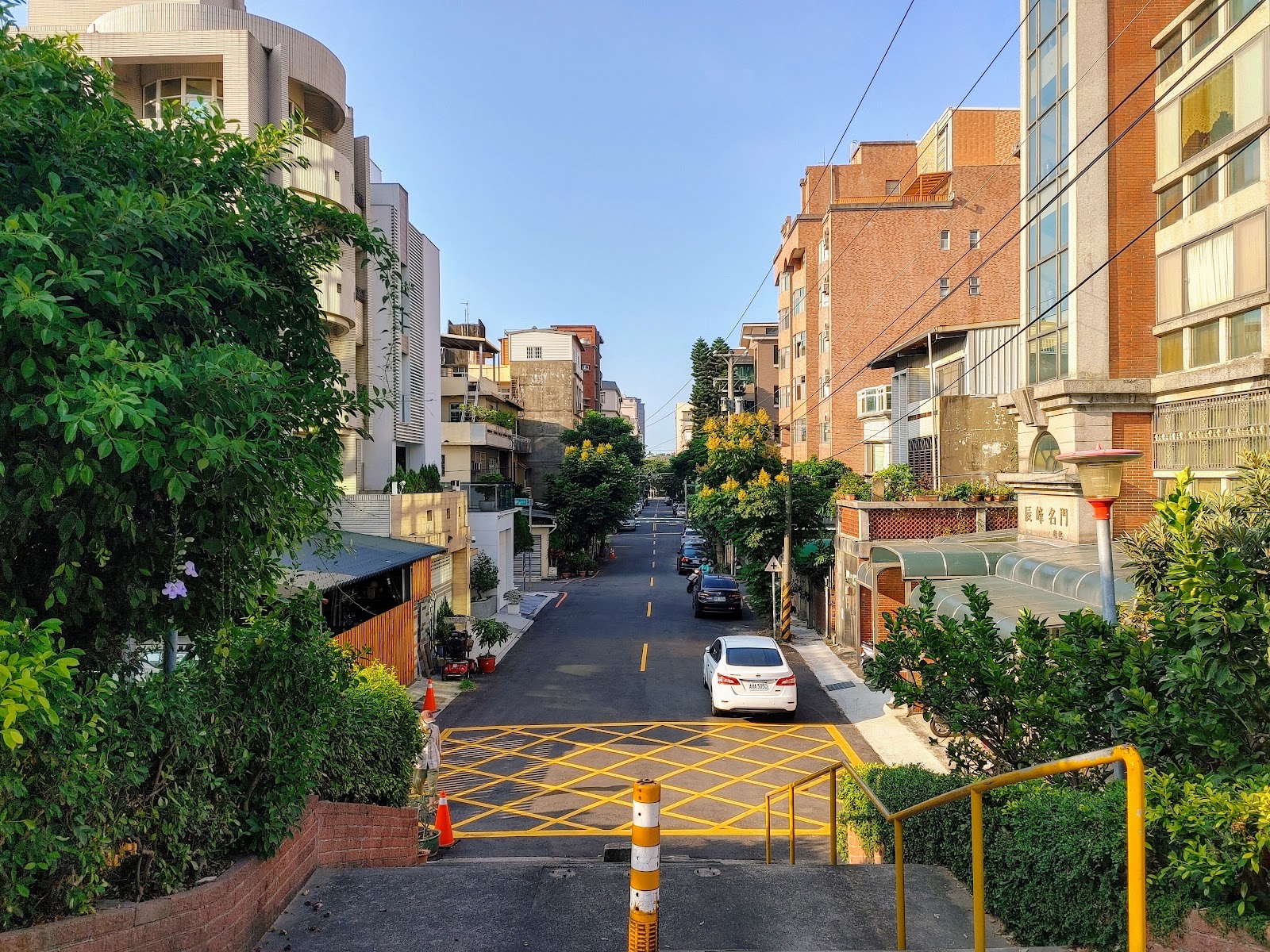 在公園角落你還會發現棧道可以連通到溝渠對面狹窄巷道,此時正是附近中學放學時間,學生來來往往相當熱鬧。沿著棧道繼續前進,木造棧道一旁是像是溪流,一旁又是樹蔭,沒想到在城市這樣小小的空間,還能夠創造這樣悠閒的鄉間風情。