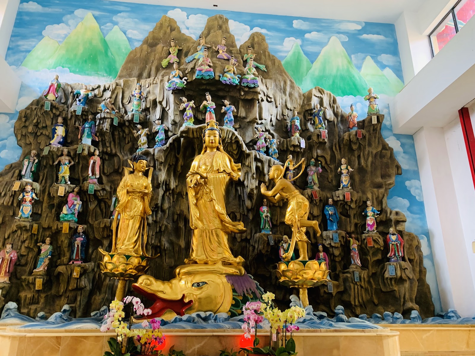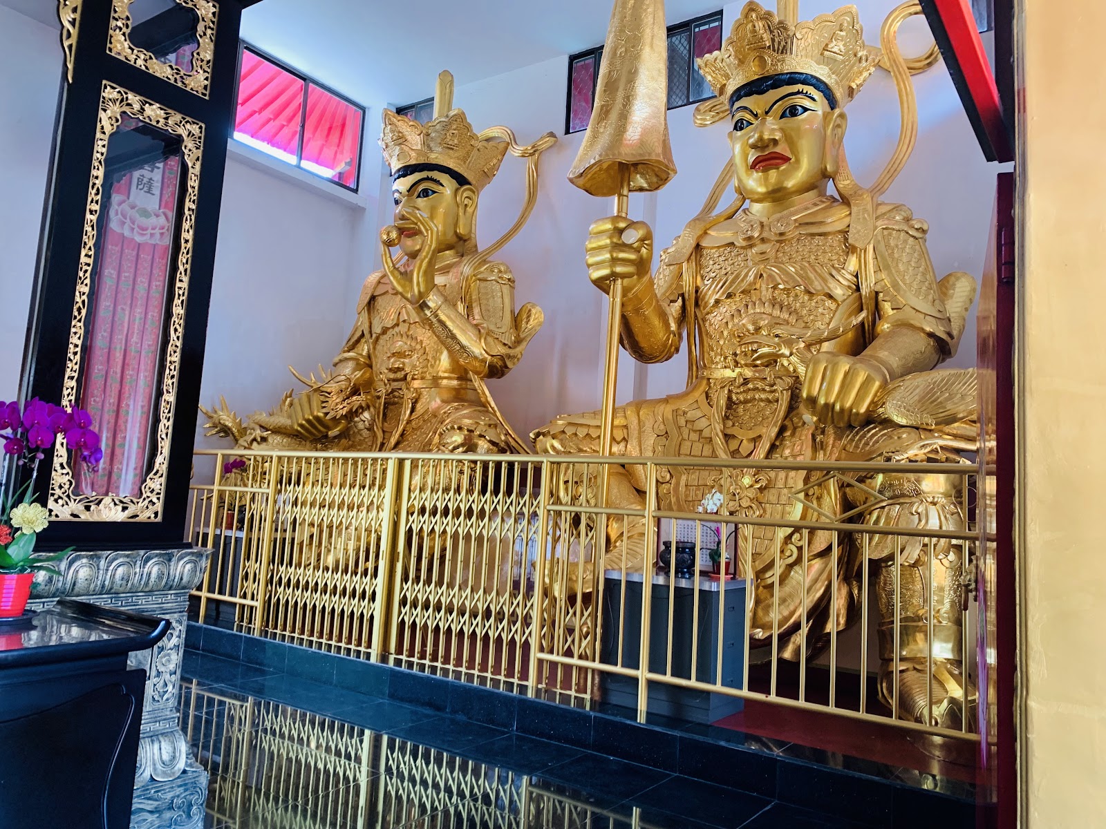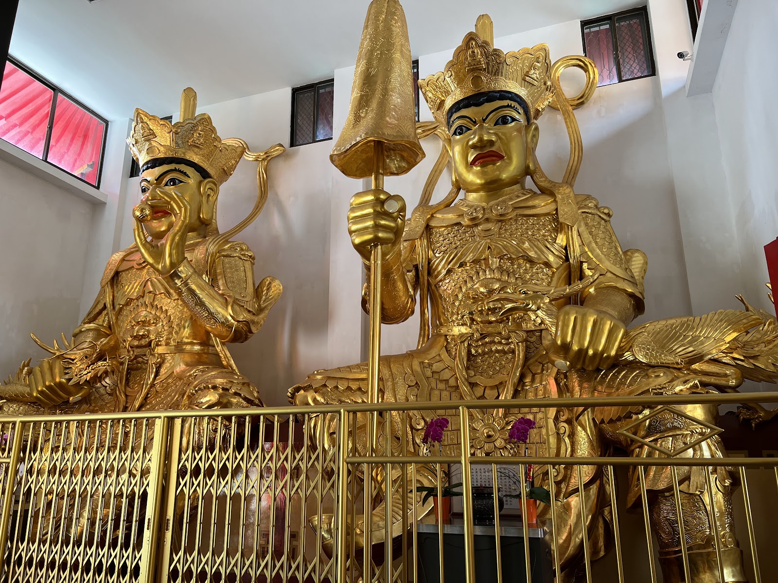 左右兩旁為巨大的四尊四大天王分別是:廣目天王、多聞天王、持國天王與增長天王