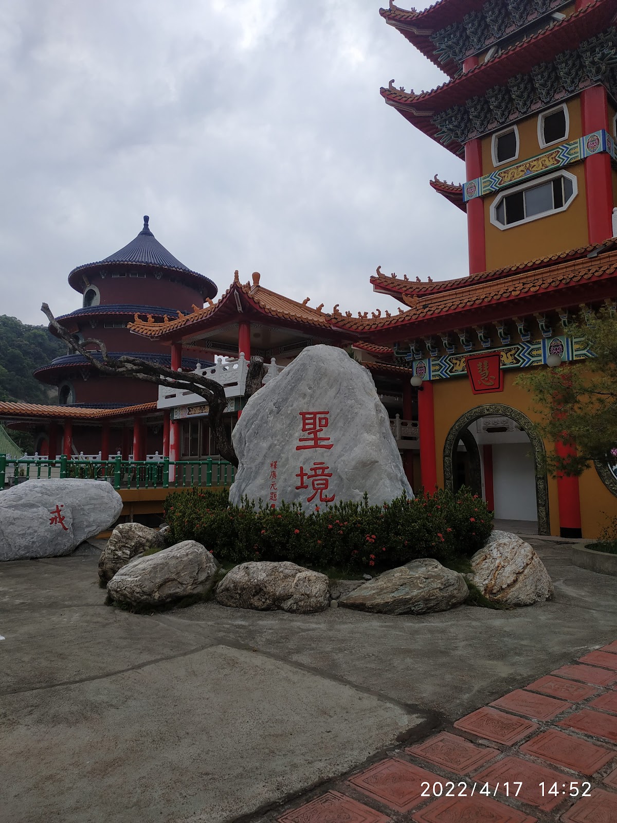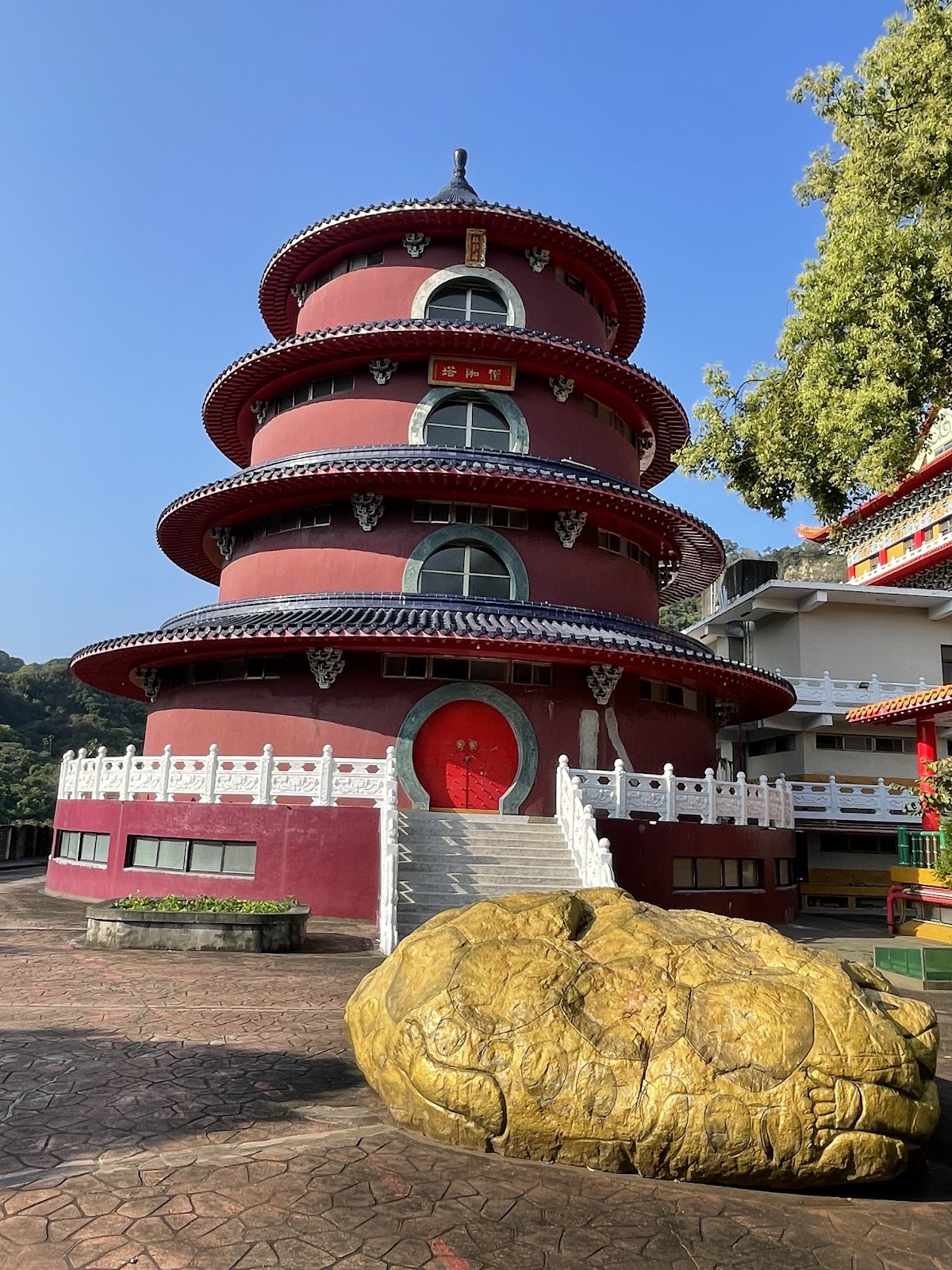 山路一路找不到迴轉的點,剛好路過有個很大的空地可以停車並迴轉,家人想要找洗手間,沒想到廟裡的人十分友善,表示建廟與此便是讓過路人方便上洗手間與喝水解渴,還有很大空地可以免費停車讓人可以步行到上面蝙蝠洞尋幽,廟裡環境清幽,且建築造景十分莊重但恬靜,讓人心境寧靜進而感覺思維清透,最上面的景色讓人心曠神怡,走到了鐘樓與鼓樓,好似跟外頭喧鬧的山區隔了一個屏蔽,山風間十分的寧靜裡吹起風鈴如此悅耳,我想這個就是所謂的緣分吧,讓我參觀了這麼棒的寺廟❤