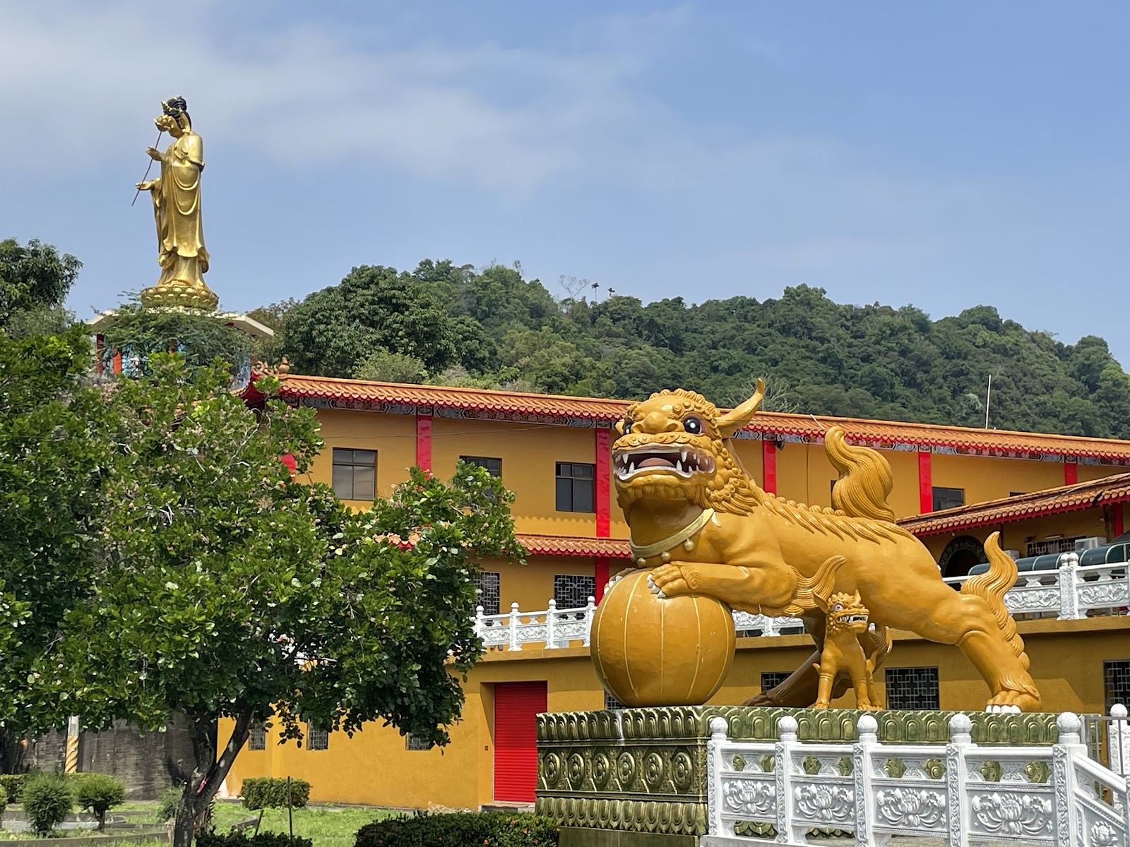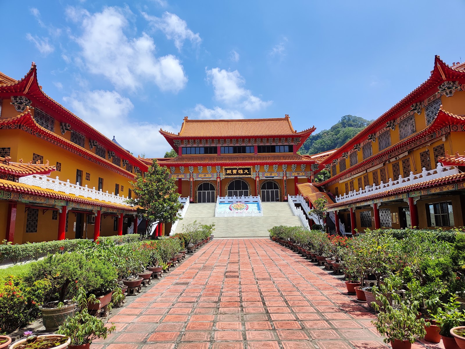 環境非常清幽,進入一些主要大殿要脫鞋子,地上保持的相當乾淨,大殿內的神尊莊嚴肅穆,我們在寺廟走動,人真的很少,可以感受到一份寧靜,抵達時天氣也相當不錯,因此可以看到蔚藍的天空以及脆綠的山丘!