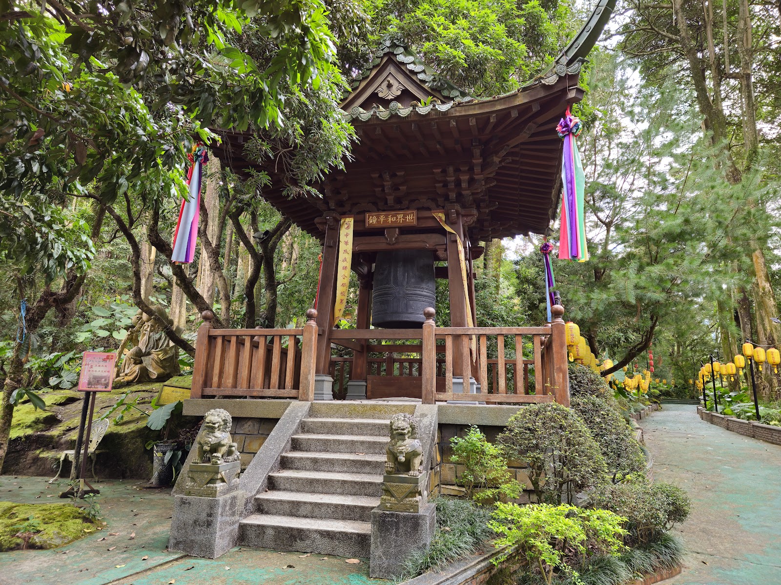 放鬆身心靈的好去處入口兩側皆可停車,如沒有空位對面也有停車場。步上階梯後彷彿進入世外桃園,氛圍有些像是到了另一個國度。一路進來有石雕、魚池、造林、涼亭、歴代文史等如有宗教信仰朋友也建議入內點香參拜,祈求平安順利健康。