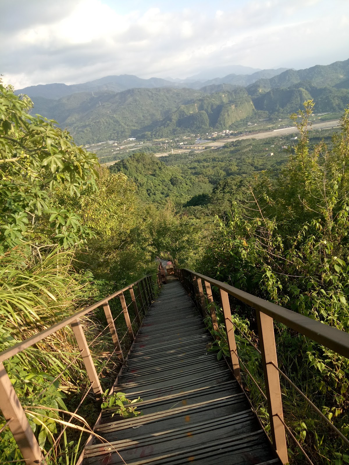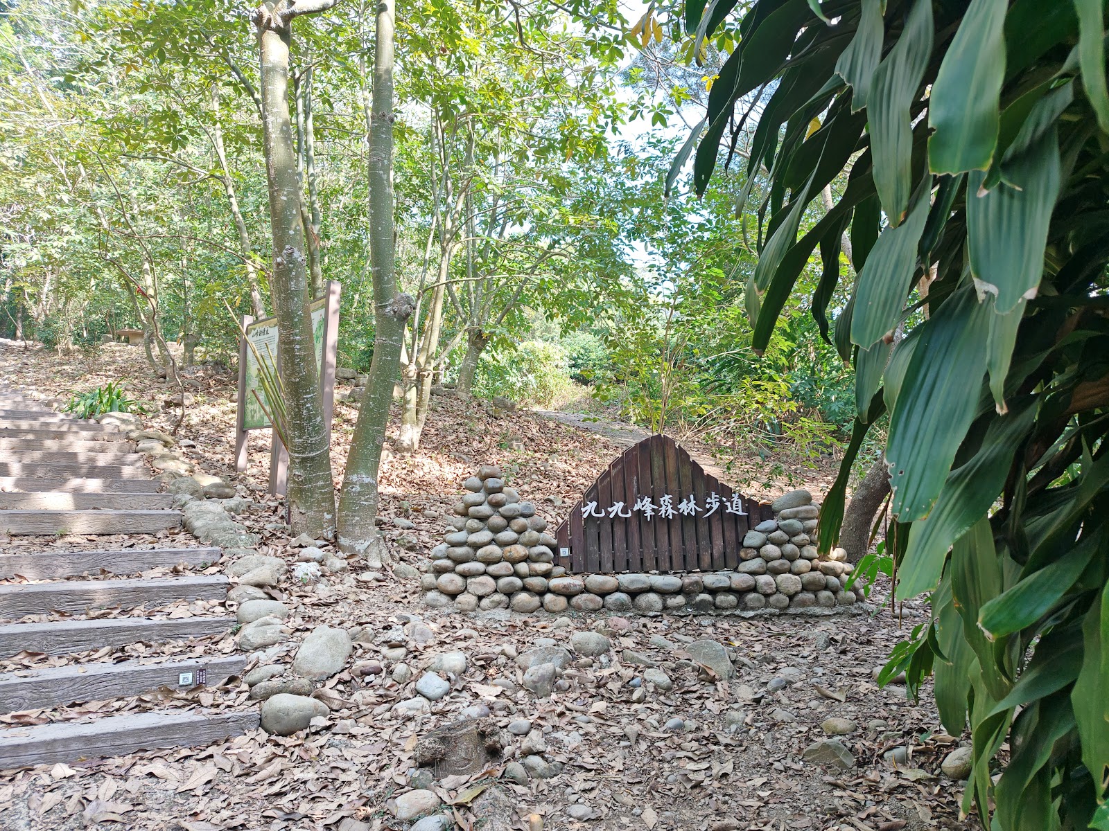 園區後,有一條登山步道,可以小登山,0型走一圈60分鐘,登頂觀景平台,背後的山景,就是九九峰,往前觀景就是中寮山脈,山下是國道六號,景觀非常棒,近市區,運動健身好所在!