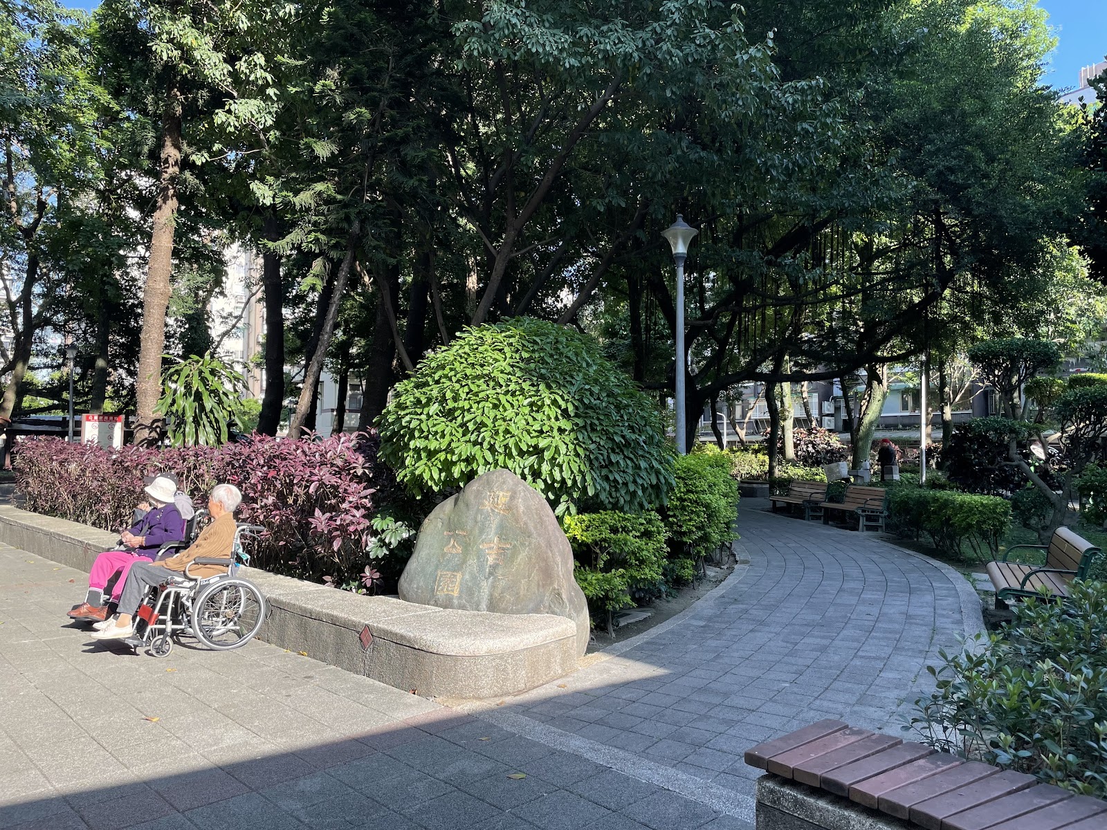 社區型小公園。滿滿樹蔭,路過時,可以休息一下的好地方。
