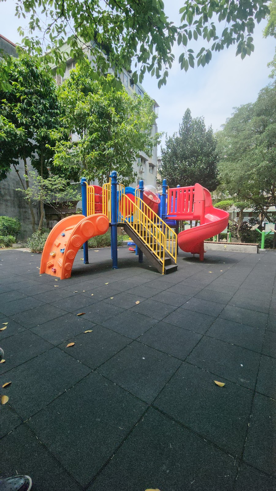 沒有特色也是一種特色,除了溜滑梯,簡單的健身器材,涼亭以外,就是綠化與步道,但綠化做的很好很密忠孝東路走進去也蠻近的,離華視大樓相當近。