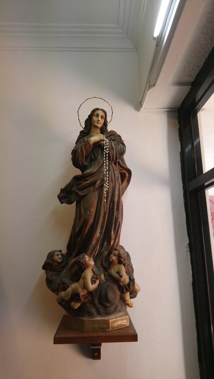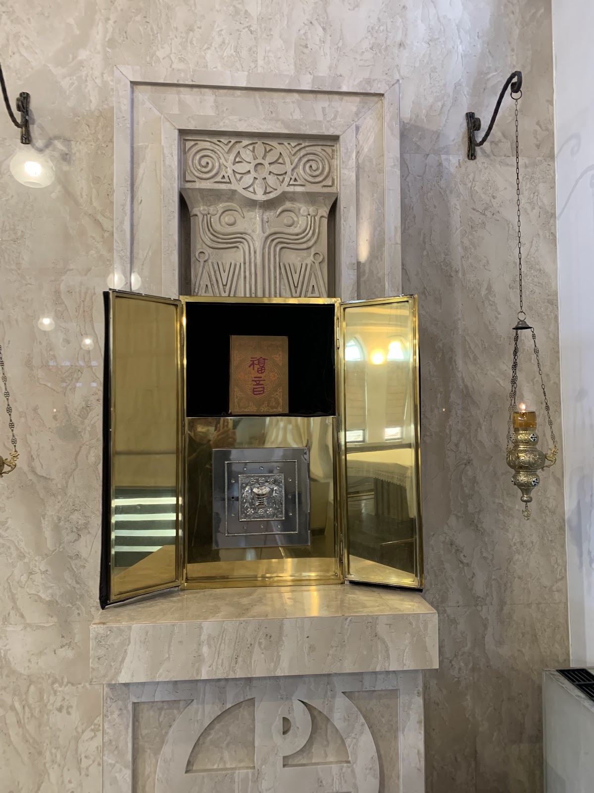 天主教堂外觀像哥德式的建築,看起來很有歷史,內外都有些浮雕,已經有歲月的痕跡。