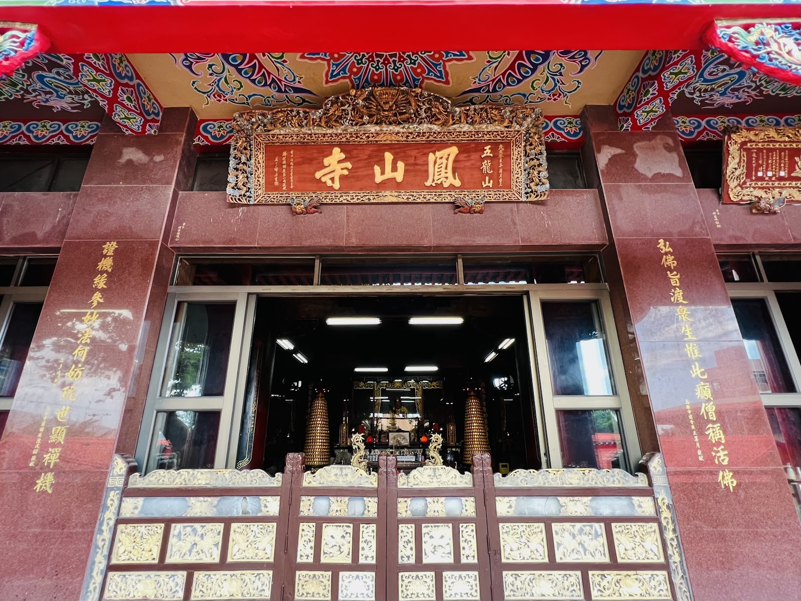 五龍山鳳山寺創建於清嘉慶年間,初奉觀世音菩薩為主神,香火鼎盛,歷經世代信眾虔誠敬拜。二戰後,地方五位士紳發起重修,經多年籌備,於民國四十四年農曆正式開山,並定名為「五龍山鳳山寺」。翌年,增祀濟公活佛,後更興建「濟公大佛金尊」,成為寺廟的重要象徵。濟公大佛巍峨聳立,高達六十一尺五寸,腳踏雲端三尺,山洞深十四尺五寸,整體高度達七十九尺,從下交流道時便可遠望其雄姿。大佛內部設有螺旋梯,共分七層,每層皆設有窗戶,信眾可遠眺四周秀麗山河,盡收壯闊美景。大佛座下環繞「蓮花池」,池水清澈,圍長九十尺,池中五龍騰空,栩栩如生,象徵祥瑞護佑。鳳山寺主體建築為「三寶大樓」,樓高八丈二尺,氣勢恢宏,內設玉皇大殿、大雄寶殿、觀音佛祖殿、濟公活佛殿與地藏王殿,兩側設有禪房。殿宇金碧輝煌,外牆及欄杆皆鑲嵌磁磚,更以濟公活佛濟世度人事蹟拼貼圖案,展現佛法慈悲精神,堪稱台灣現代寺廟的典範。寺內設有寬敞免費停車場,適合信眾前來禮佛參禪。濟公大佛更是旗山著名地標之一,而我所敬奉的濟公師父亦是從此分神而來,因此我時常來此朝拜,感受佛光普照的祥和與庇佑。