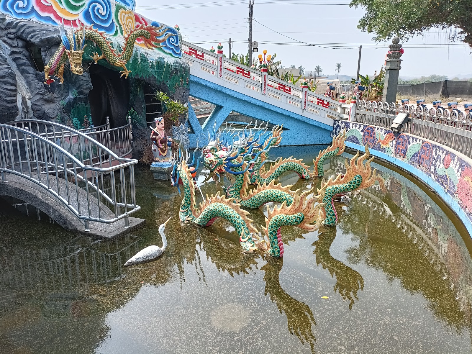 連七度來訪👍我說過幾乎每個月都會來一次,所以這裡再也熟悉不過,我就來簡單介紹一下,就依廟体而言,分為前殿跟後殿,前殿中間祭拜著主神觀世音菩薩.左邊為如來佛祖.右邊為濟公菩薩,再往左邊供奉濟公活佛,有供人請回濟公菩薩分身祭拜,只有有應杯,就可以跟廟方服務人員洽詢,現在濟公菩薩的分身;已遍滿台灣各角落,連國外也有許多分身,可見濟公活佛有多靈驗👍最左邊為關帝聖君,而右邊祭拜天上聖母,前方有仙姑爐,最右邊為五府千歲,前殿一爐一炷香,共七炷香,當然最大的特色就是,前殿前的濟公大佛,民國51年建造56年開光點眼完工,下面有108座小濟公圍成一圈,且有魚池水非常清澈,魚也很大隻非常漂亮,而濟公大佛有樓梯,可以爬上去瞭望整個五龍山鳳山寺;且裡面彩繪著濟公活佛的種種事跡,再來後殿分為五殿,一樓為地藏王菩薩殿,祂的宏願大地獄不空誓不成佛;第二樓為濟公殿,左邊為土地公,前方有太歲爐,而右邊為註生娘娘,而旁邊有大陸出土,台灣唯一一件濟公活佛的寶衣,也是全球唯一,第五樓為觀音殿,左右兩旁有十八羅漢,第七樓為如來佛殿,這裡有個特殊的景象;就是有如濟公大佛拜佛祖的景象,倒影再如來佛前的玻璃上,非常特殊👍而頂樓就是第九樓為玉皇殿,祭拜的就是玉皇大帝,前面有三官大帝,也就是我們俗稱的天公,大家可能忽略了一個地方,那就是金爐旁邊有個古井,它也有故事性的存在,還有香客大樓;提供來進香的香客進住,更有餐廳提供早餐跟午餐,總而言之親愛的朋友們,有經過旗山一定要下來拜拜一下,且停車場非常的大,非常方便👍我相信諸神會保佑你平安健康,還有在入口處有一座五龍山鳳山寺的福德祠,不妨走過去參拜一下,旁邊有水溝,水裡可見魚兒穿梭😀