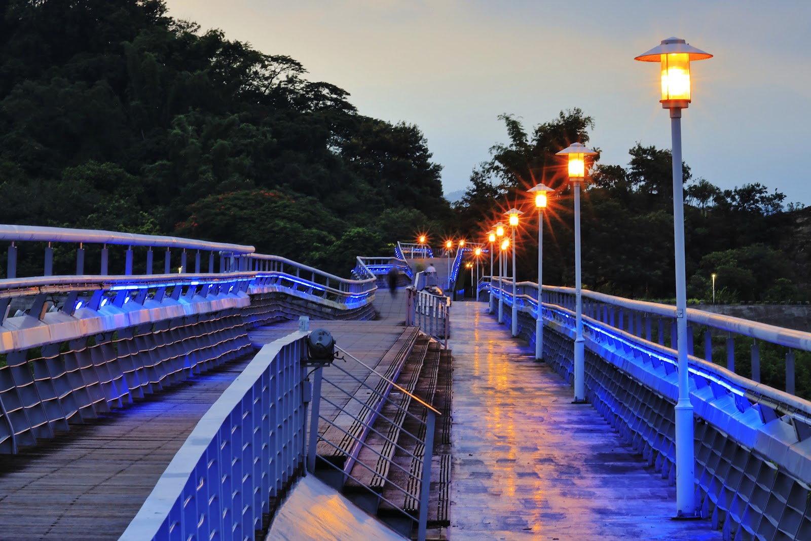 這裏樹木尚未達到高聳能蔽日的境界,建議炎夏最好是黃昏時候才至此走走,一方面可觀落日依山而沒的美景,另一方面向晚之風吹拂下,身心很舒。