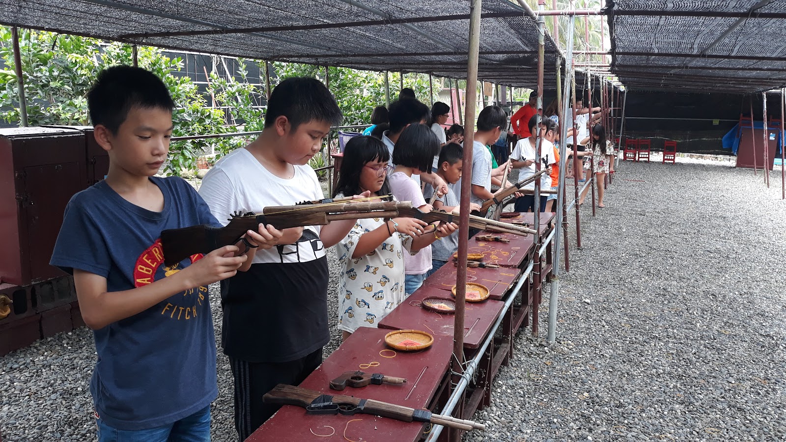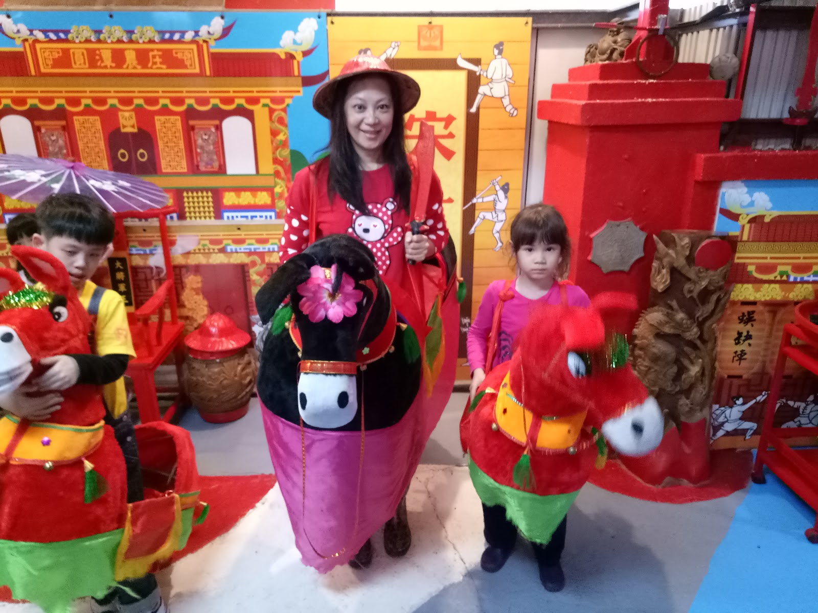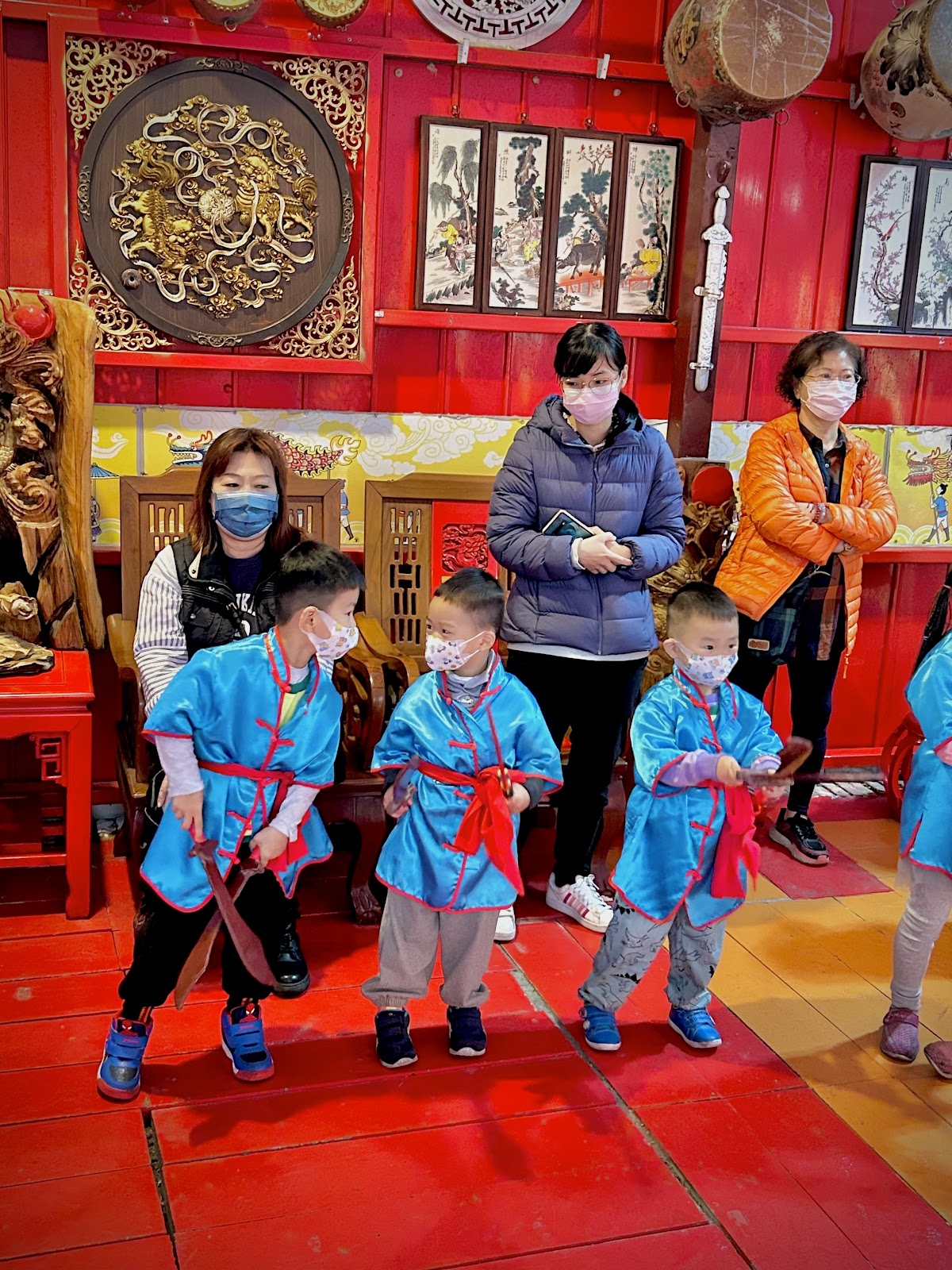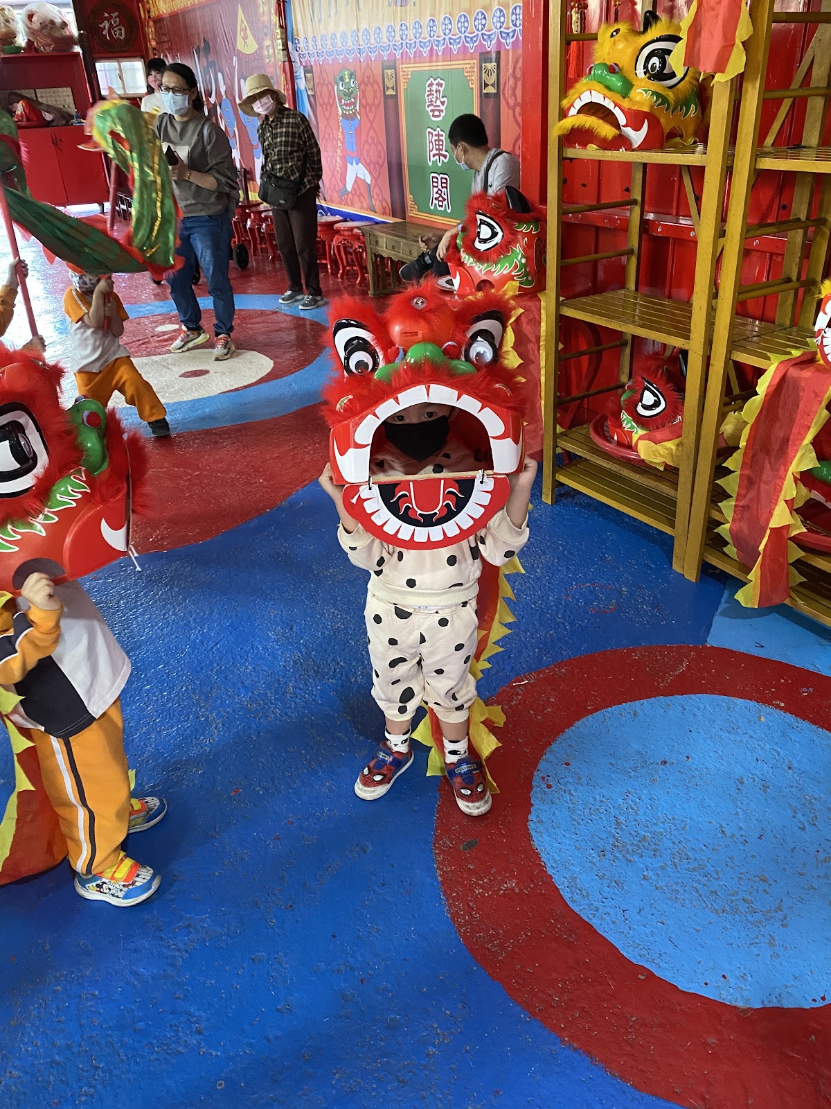這次活動有玩竹蜻蜓、滾鐵圈、丟圈環、踩高蹺、坐(騎)三輪車、射箭、射木槍(橡皮筋)、打鼓、宋江陣體驗(有換宋江陣服裝)、布袋戲體驗、舞龍舞獅、打水杖、金桔飲料喝到飽,還附送冰棒,一天的行程超級豐富!