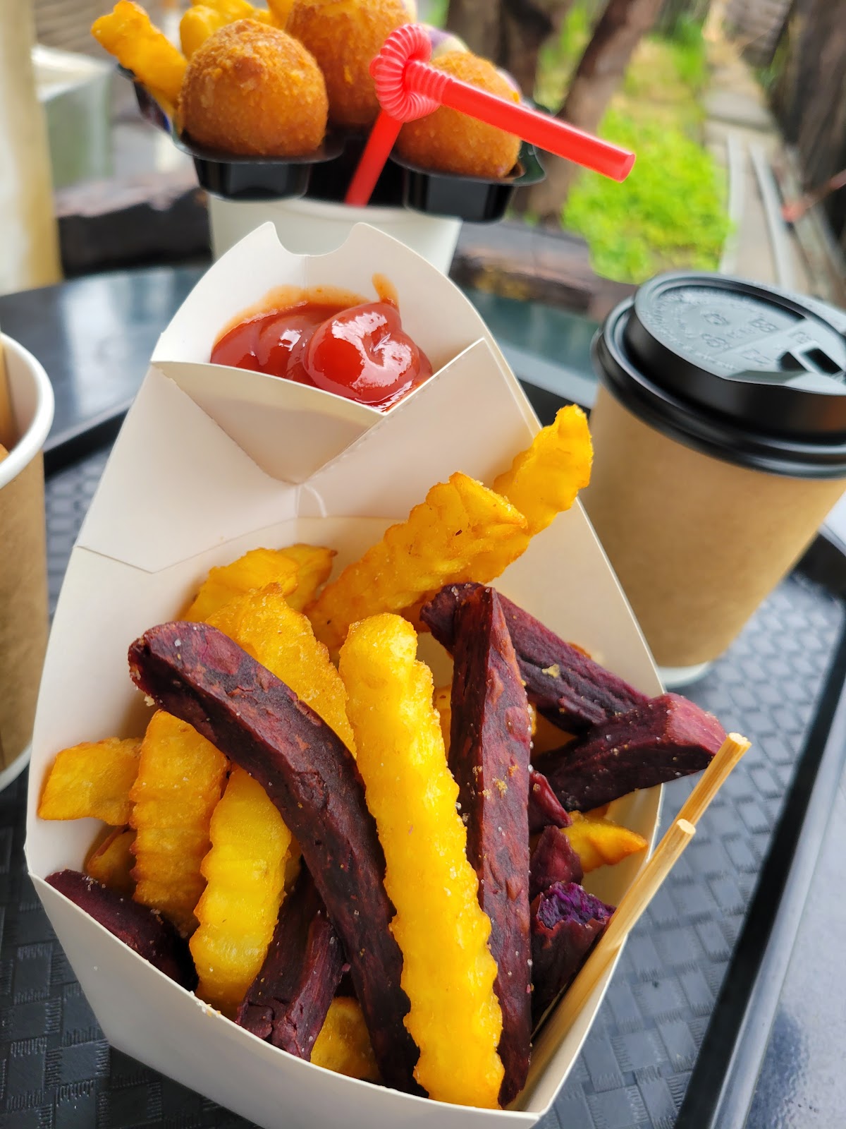 §地瓜冰淇淋-口味蠻特別的。地瓜薯條-炸好熱騰騰的吃,好吃,份量也不少。