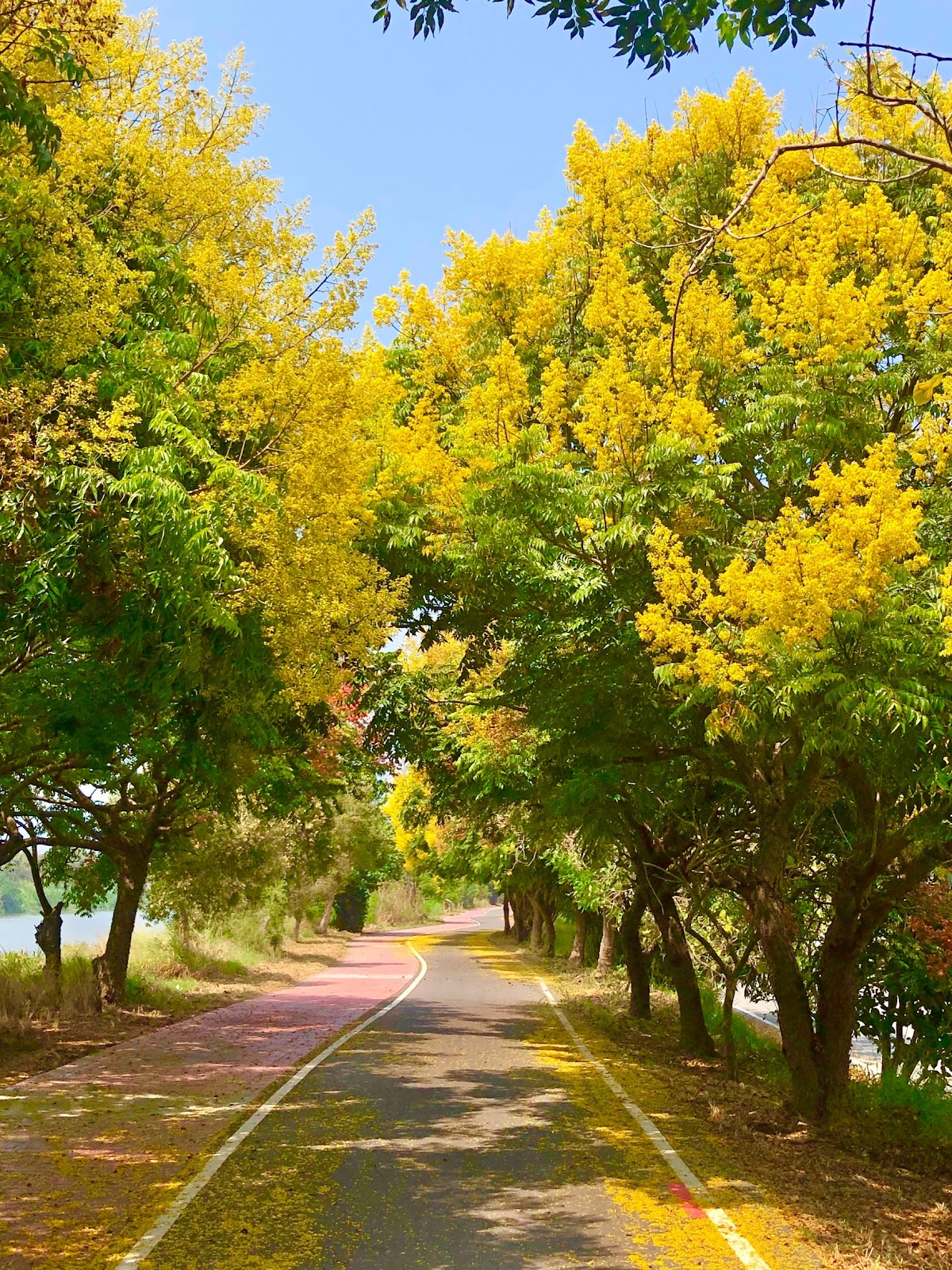 2023/9/24造訪,充滿綠蔭的欒樹步道,開花跟蒴果從上方或是旁邊看比較清楚,步道中則是欣賞金黃色小花掉落鋪成金黃色地毯的美景,是個悠閒自在的景點~👍