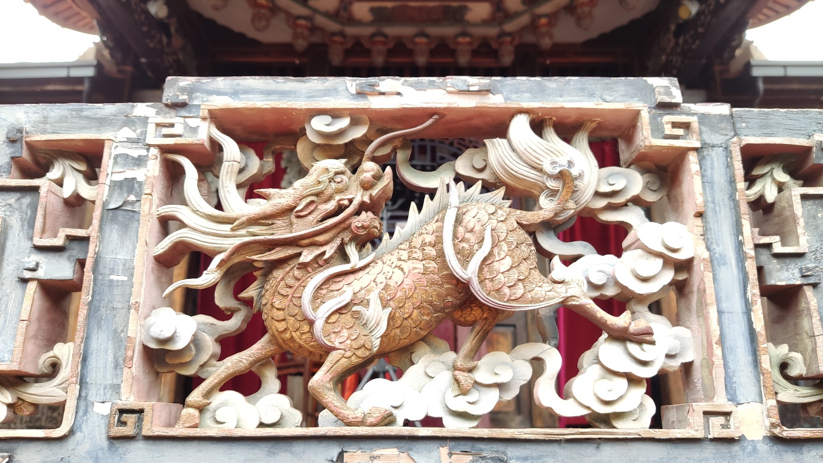 因為長時間風化(從清朝至今,保存較具規模的地方),還有921地震發生,導致修復一直持續進行,也因經費不足,僅有修復重要的大型雕花和兩側廂房(是觀眾席,能走動觀賞,也能聊天品茶,如若仔細觀察側邊的裝飾,還能發現,一樓和二樓的差異,為了凸顯林家地位,從小處的裝飾花看起端倪,是向上慢慢綻開,有步步高升之意)。
