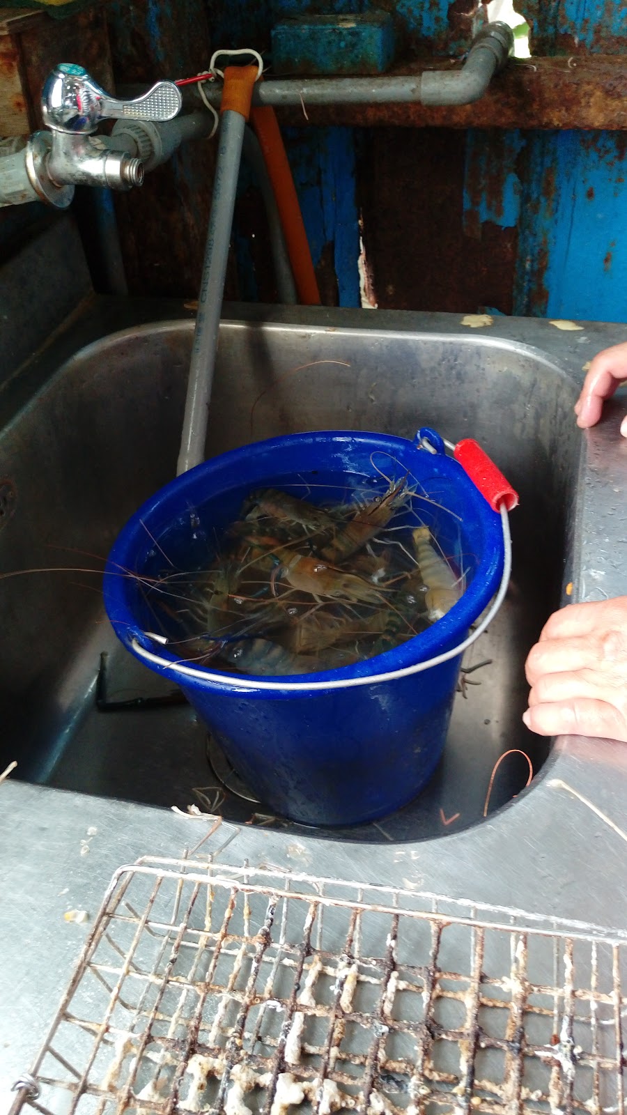 釣蝦子,如果你釣不到,用買的來烤蝦吃