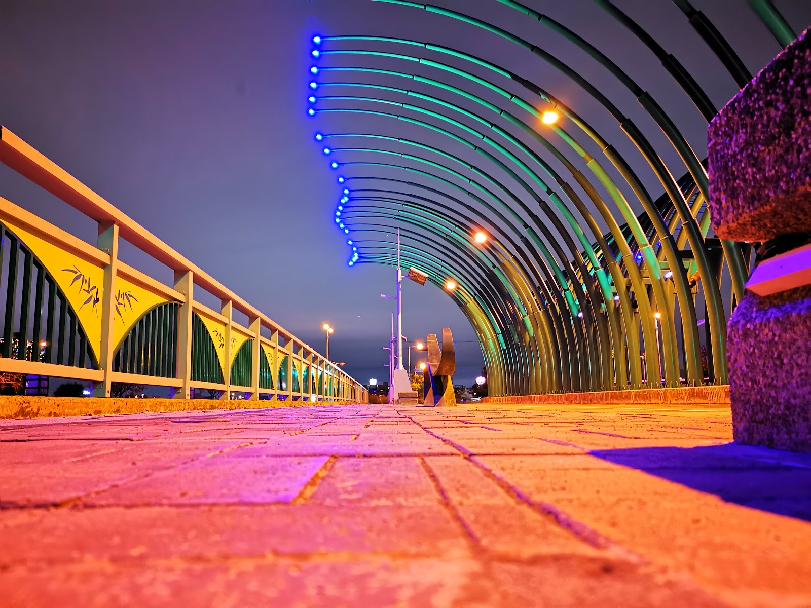 晚間散步的好選擇,橋比以前更粉色,橋面燈光以前會變色,現在是固定燈光,但個人覺得比以前更有美感!