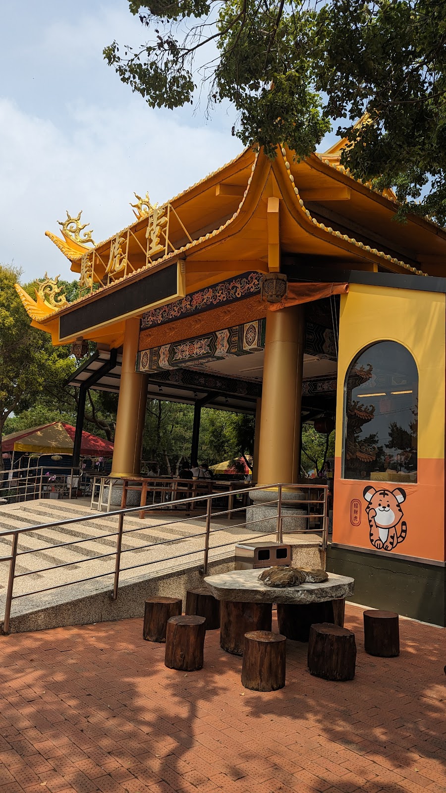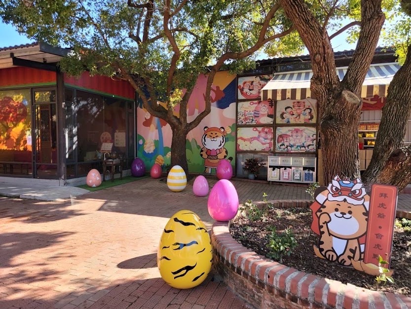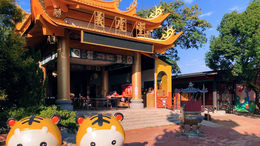 來祈求虎爺祖庇佑,再吃開運紅蛋,廟內有許多可愛的老虎裝置藝術可以拍照,小朋友可以到池塘餵魚(需買飼料),也有咖啡可以買來喝,有緣的話可以把小虎爺祖請回家