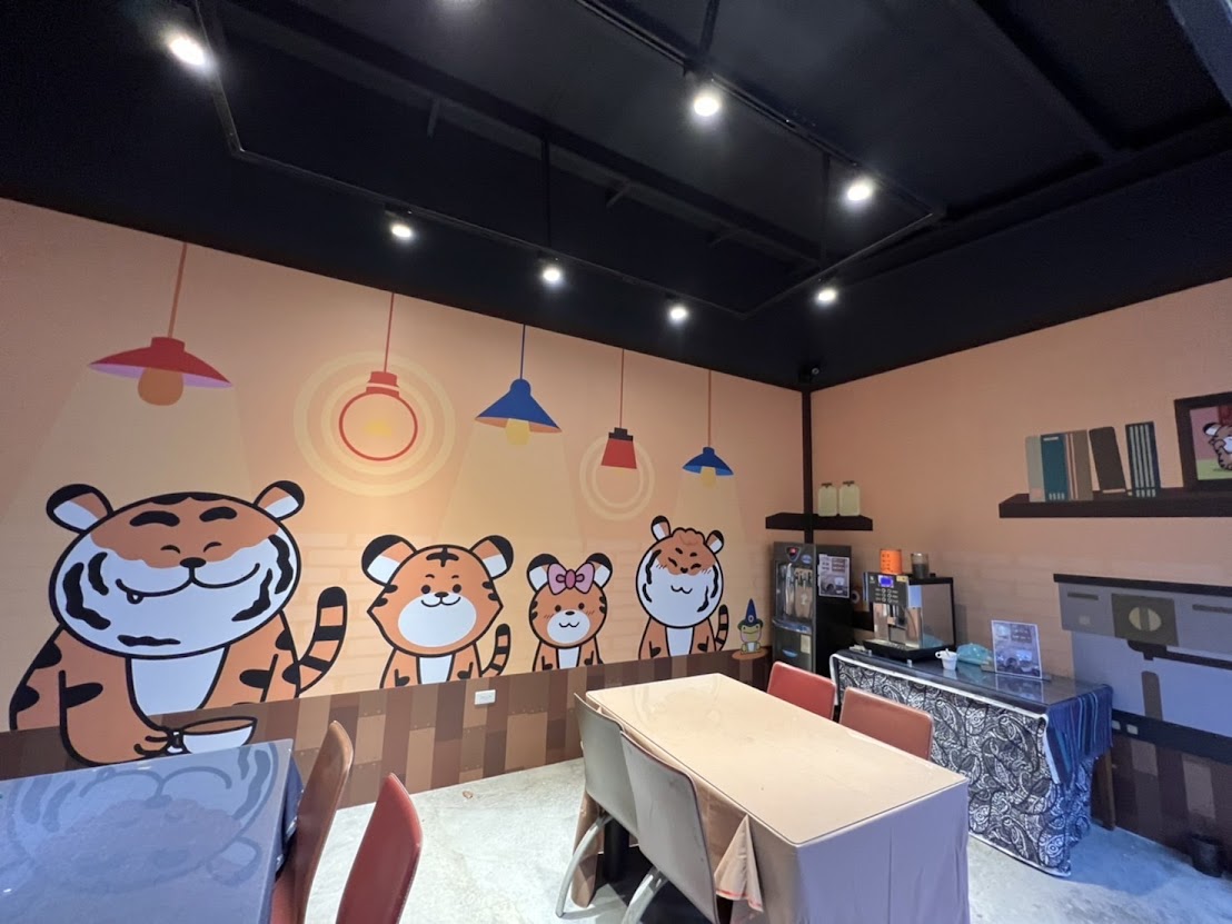 有很多小老虎的壁畫和公仔可以拍