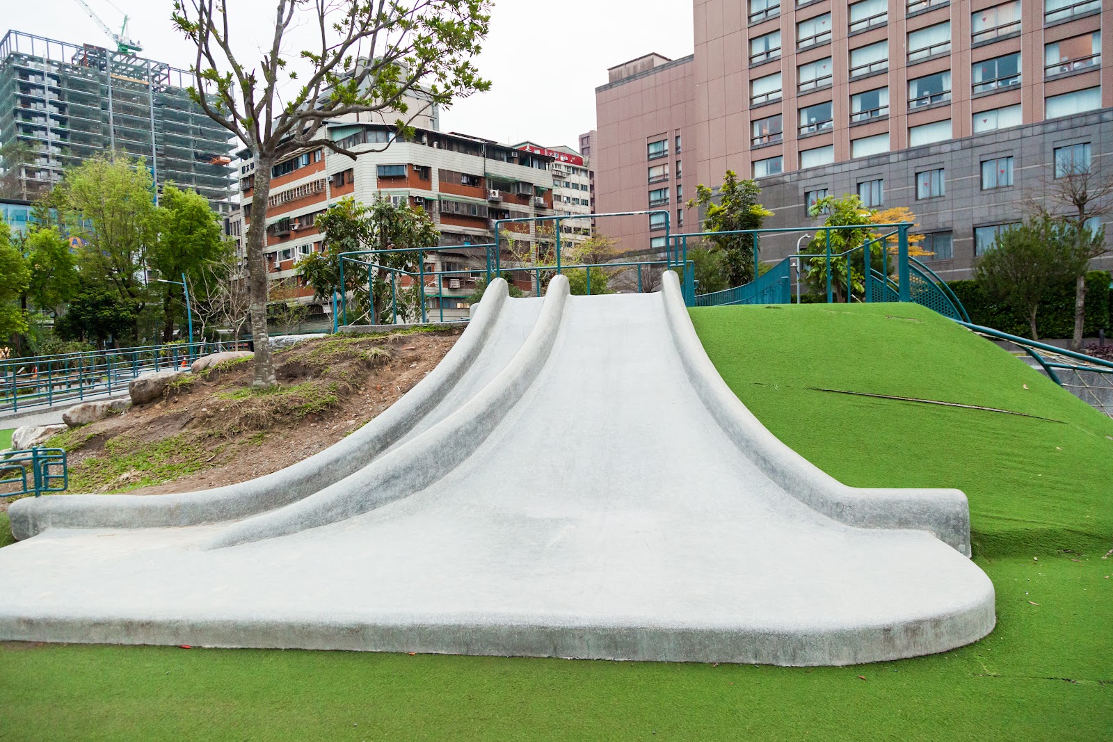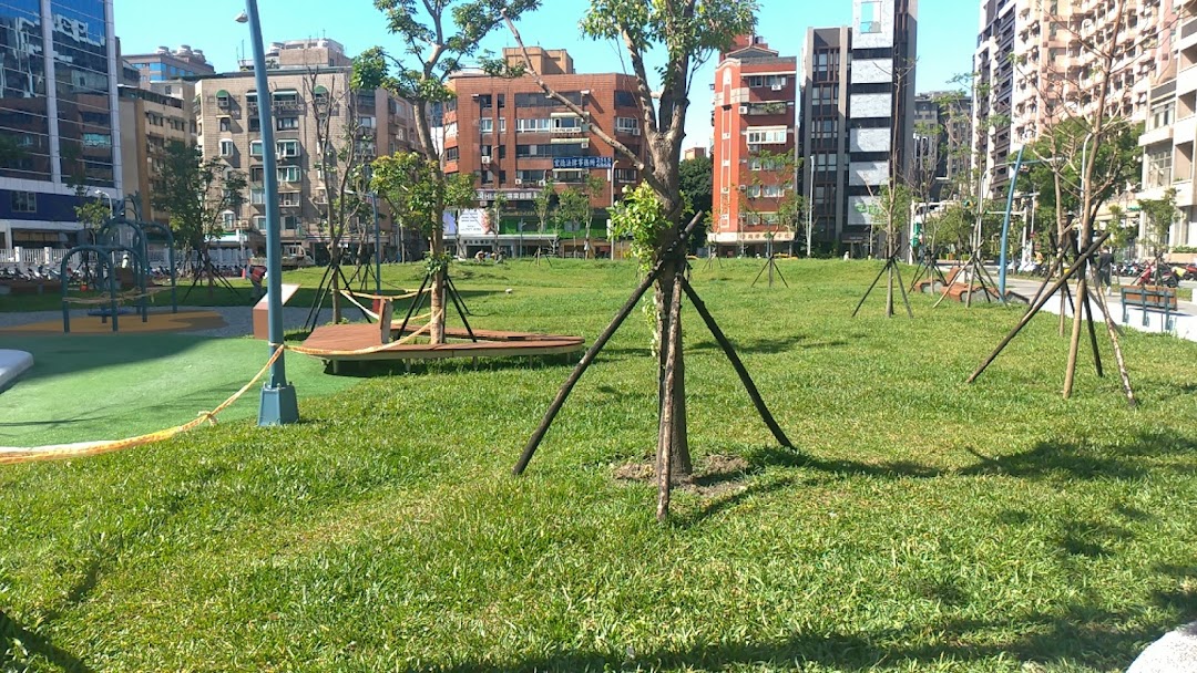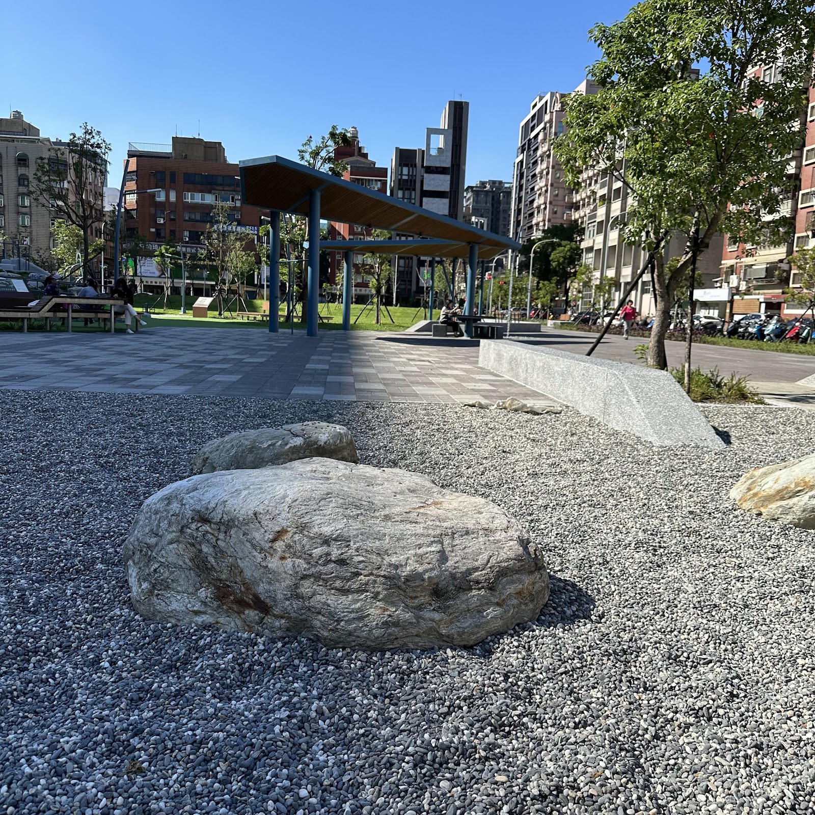 腹地廣大的新式共融公園,位於住商混合區域,鬧中取靜,平日早上有長輩活動做早操,中午有上班族休憩喝咖啡,傍晚就是孩子活動高峰,假日期間則有不少家庭休閒野餐,還有狗狗可以活動的石頭區,是個受眾很廣的公園。
