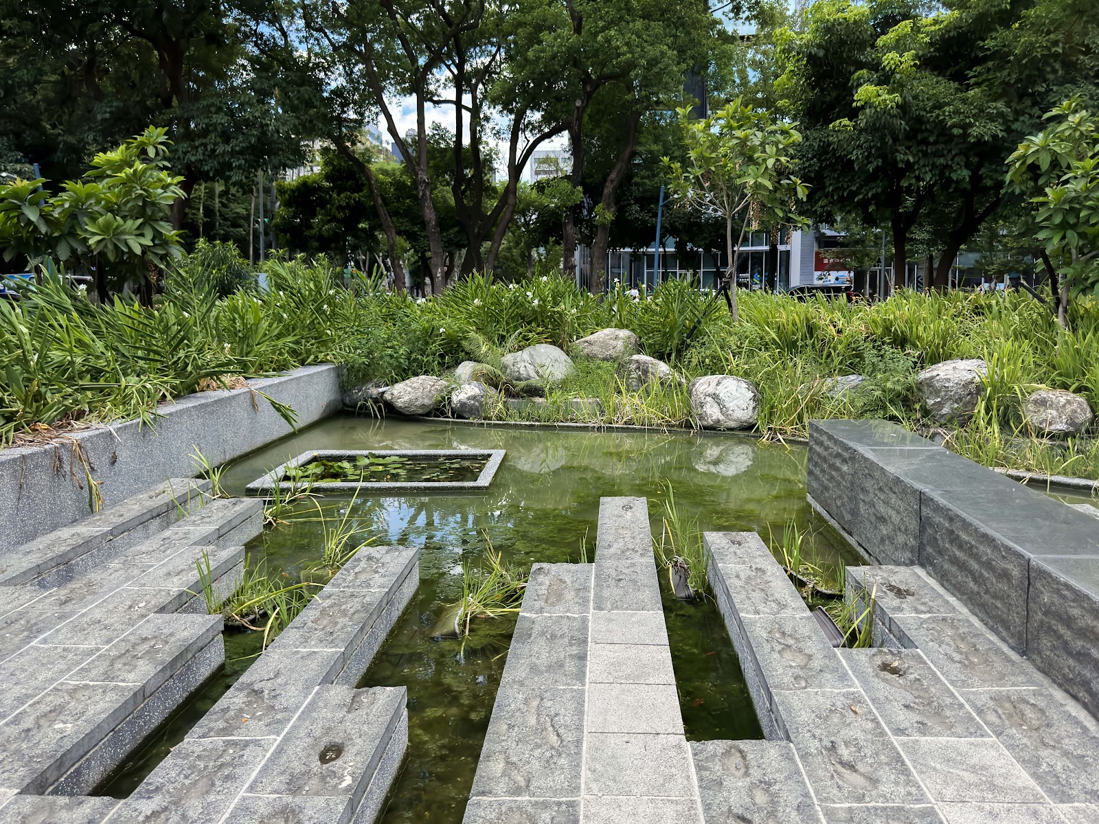 餐後來散步,園內的設施設備很不錯,還有水池造景跟雨水儲存設施。