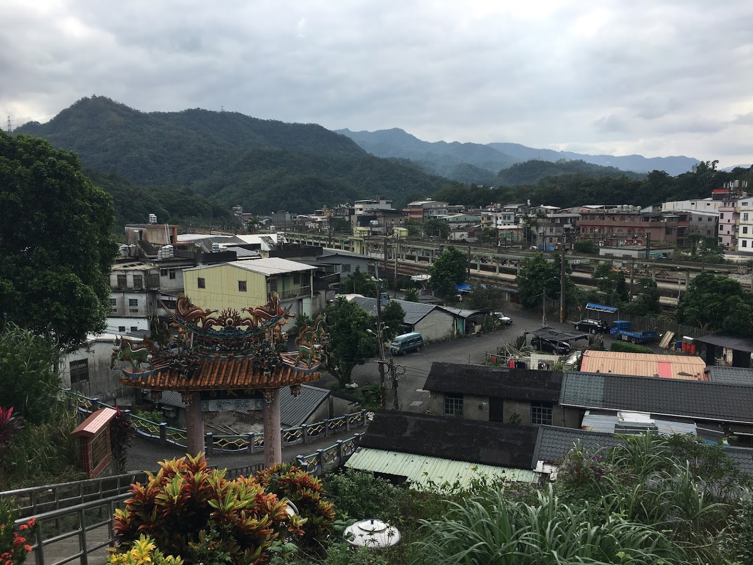 南天宮的景觀很好,尤其天氣好的傍晚夕陽,可以俯瞰雙溪許多美景,火車會車時很漂亮