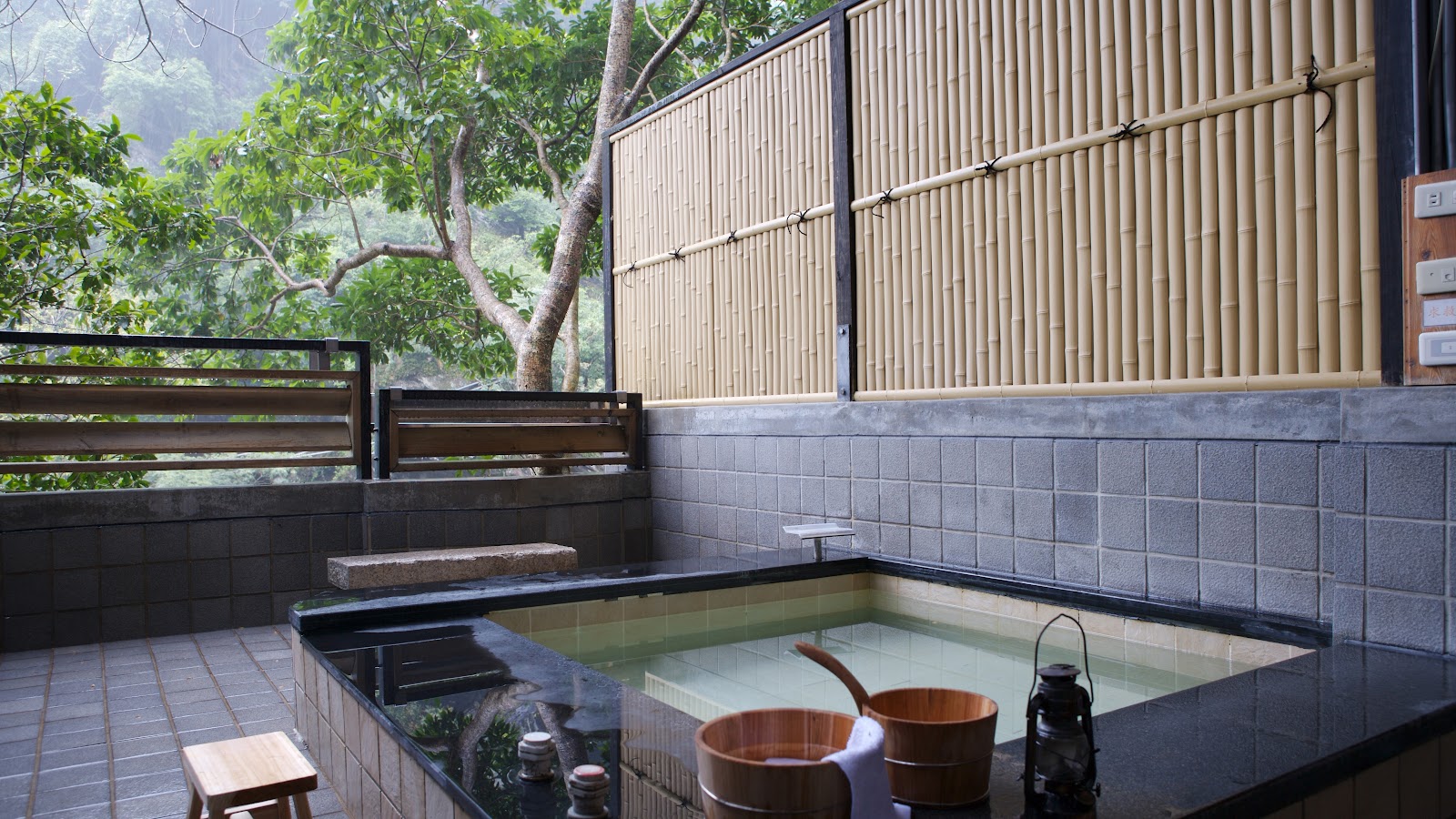 這次選的戶外的房型,可以看到桶後溪。出水量很大,所以放水挺快的;不要要注意,溫泉很熱要小心。