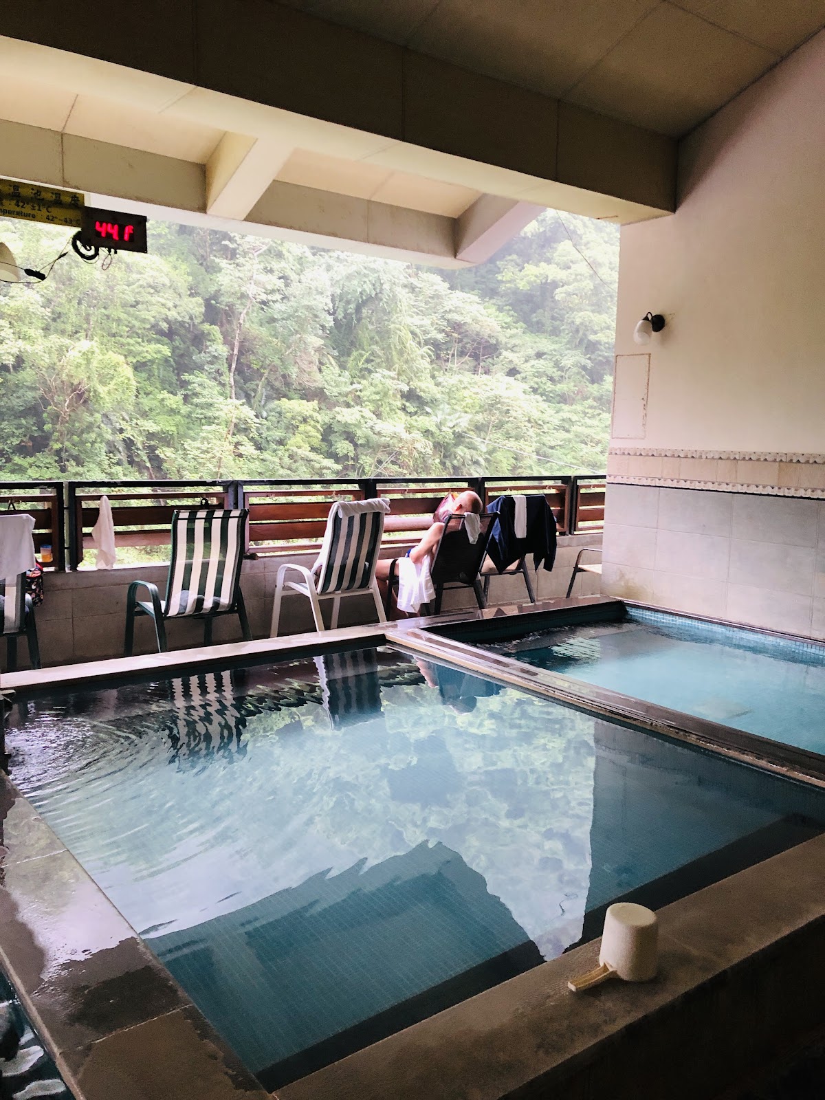 烏來泡湯大眾池,很喜歡烏來名湯,不是全密閉空間,不會悶,還有風景可以欣賞。
