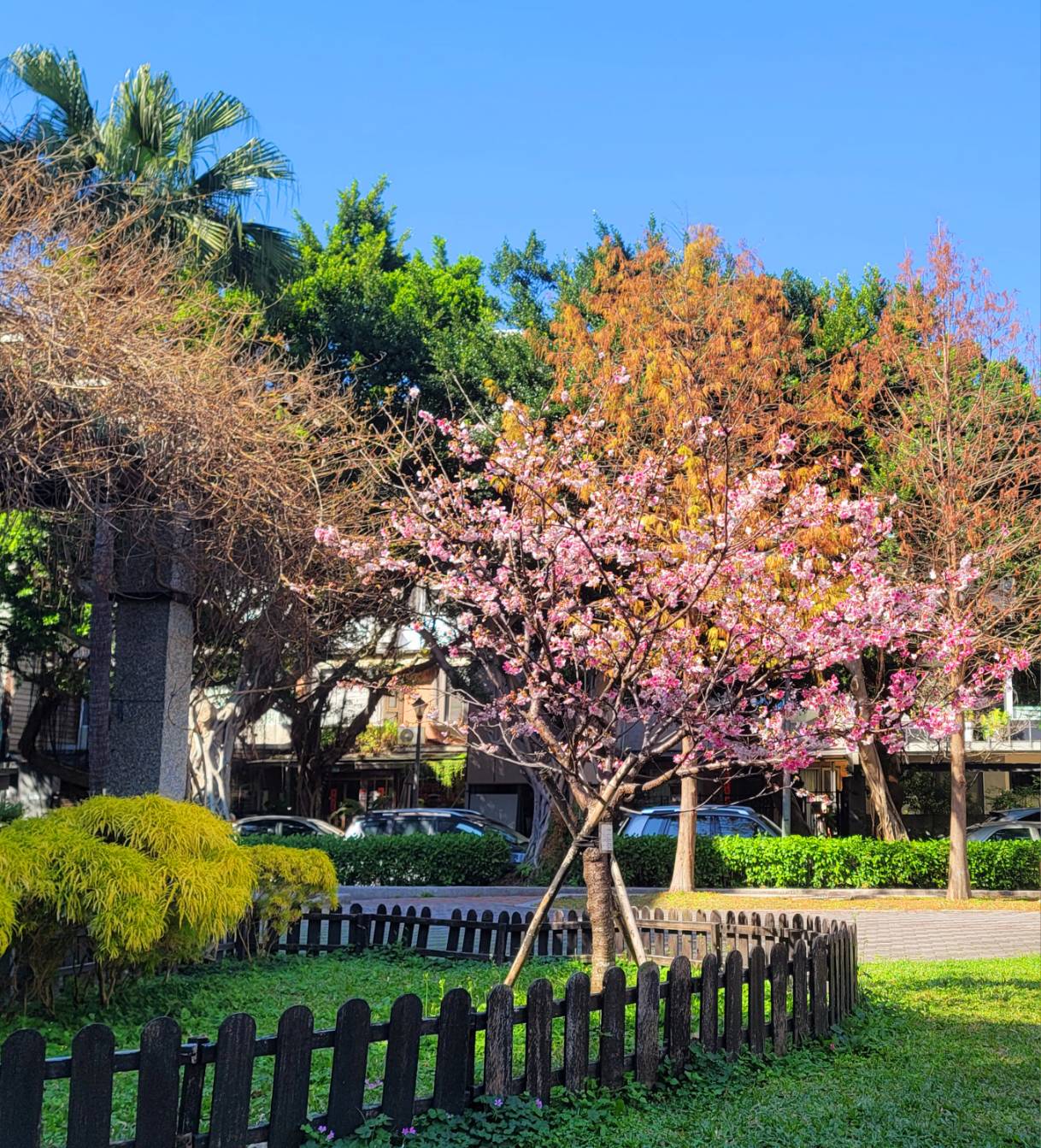 小而美的公園!有野餐桌、小廣場,漂亮的落羽松、櫻花、桃樹,四時皆宜的地方!