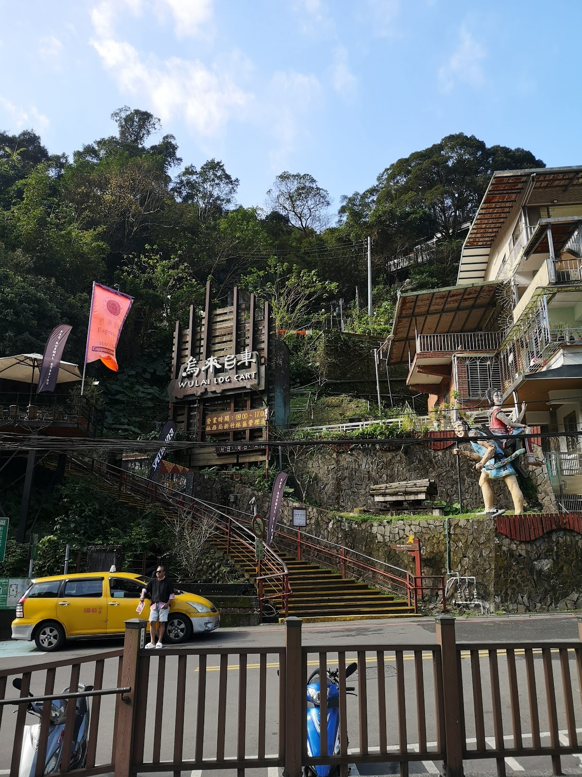 在Google 地圖上找了烏來台車位址,結果,我們車子竟然開到了農業部林業及自然保育站,路上看到走往台車的階梯(往下切),有點荒蕪以為錯了,回頭停好車(溫泉路86巷白線上),走下階梯,沒錯就是這裡!!如若車子停在溫泉路上也可,只是階梯往上走,台車位置剛好就在兩者之間!!